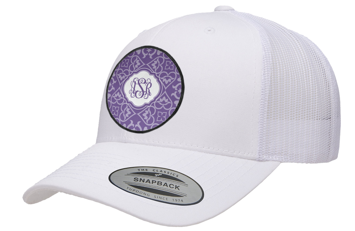 A purple scalloped label highlights a classic personalized monogram or the personalization of your choice.