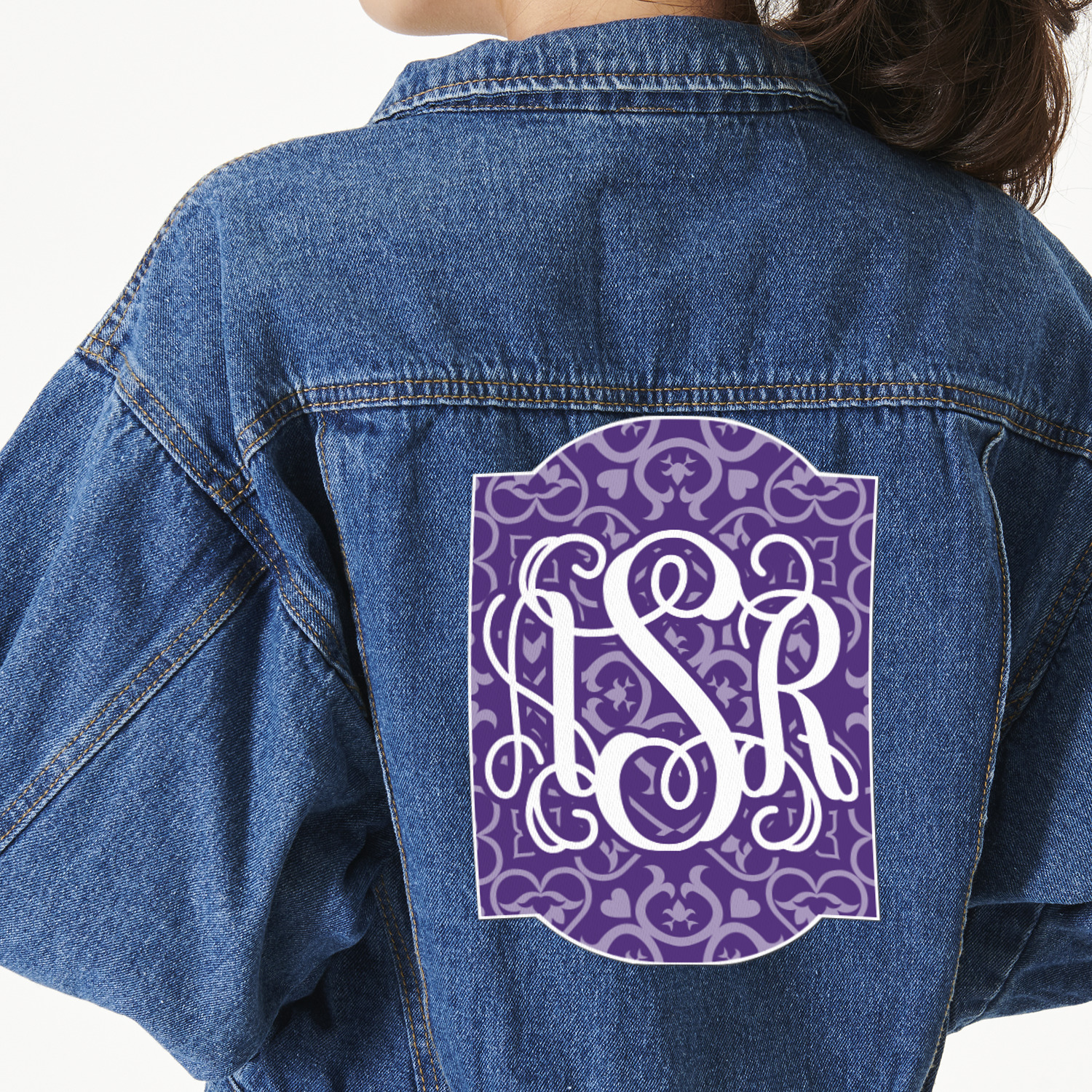 A purple scalloped label highlights a classic personalized monogram or the personalization of your choice.