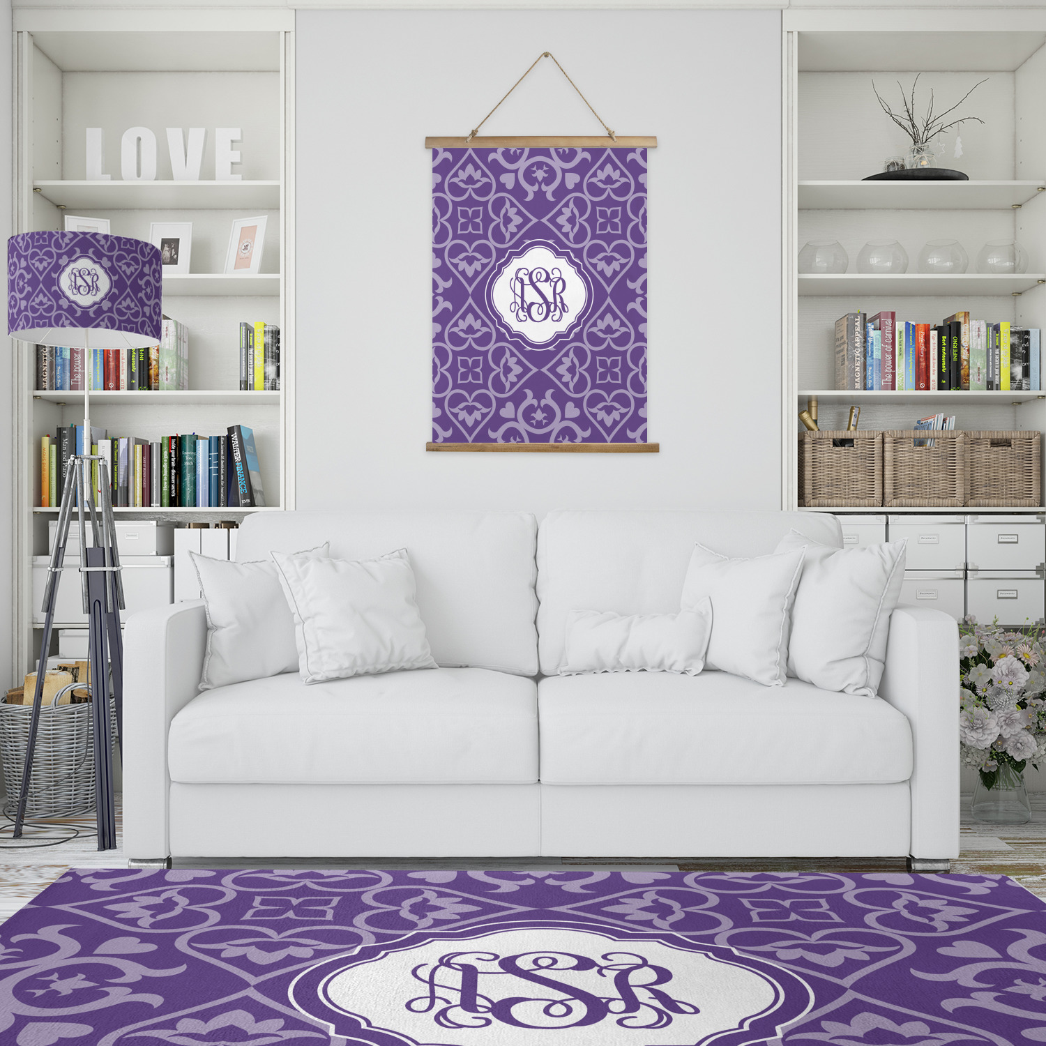 A purple scalloped label highlights a classic personalized monogram or the personalization of your choice.