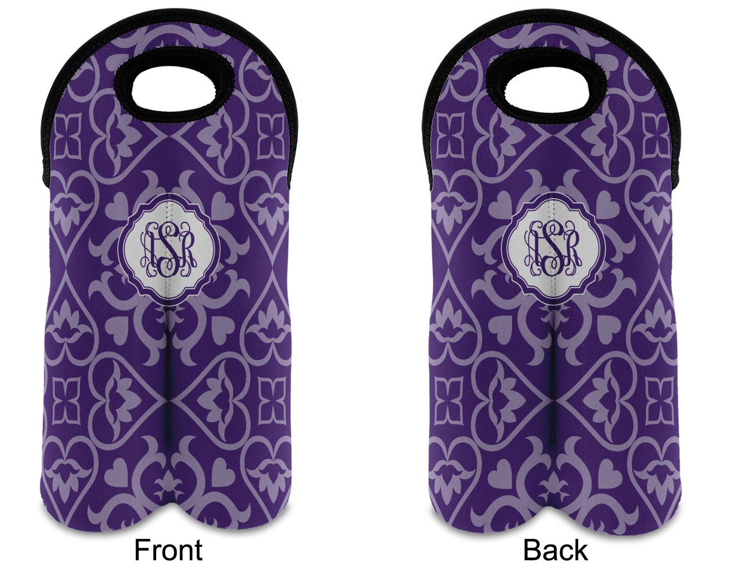 These tote bags are insulated to keep the bottles cold and have a stitched separation down the middle and double handles to keep the two bottles safe and secure during travels.