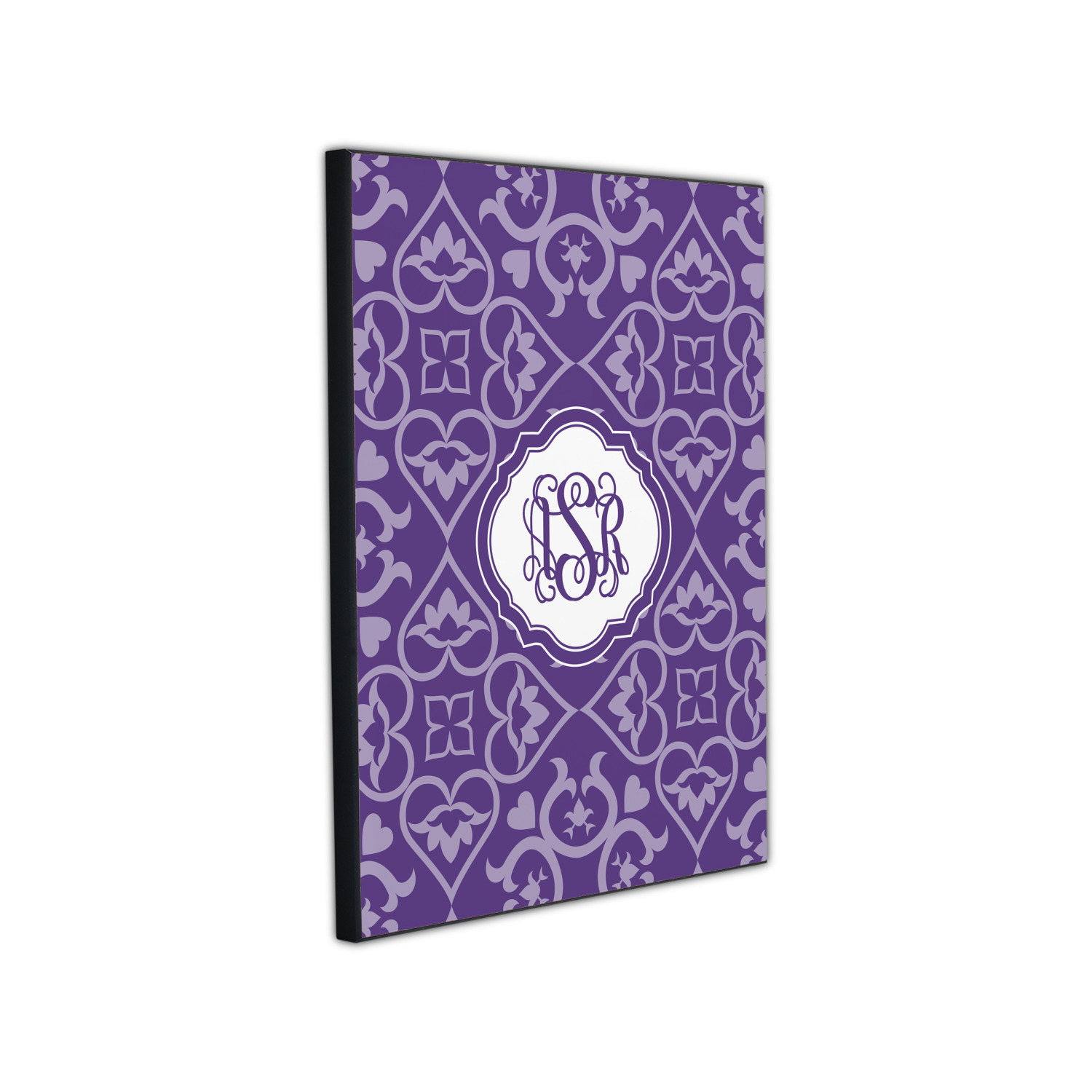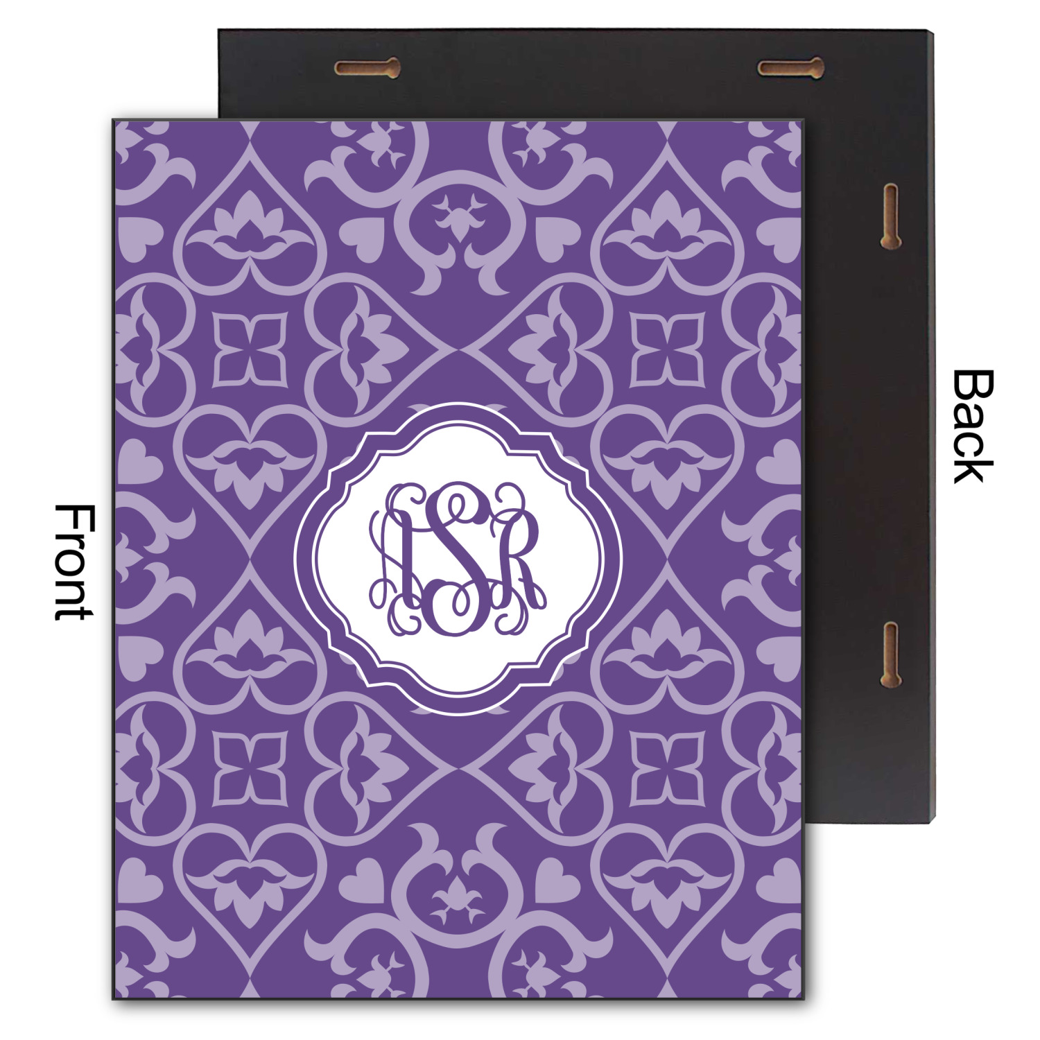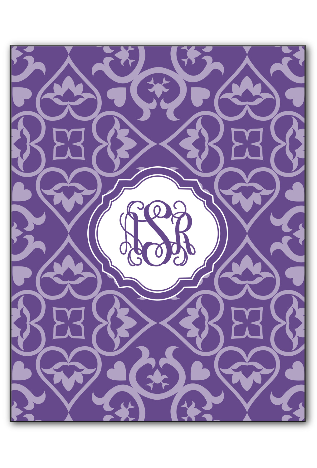 A purple scalloped label highlights a classic personalized monogram or the personalization of your choice.