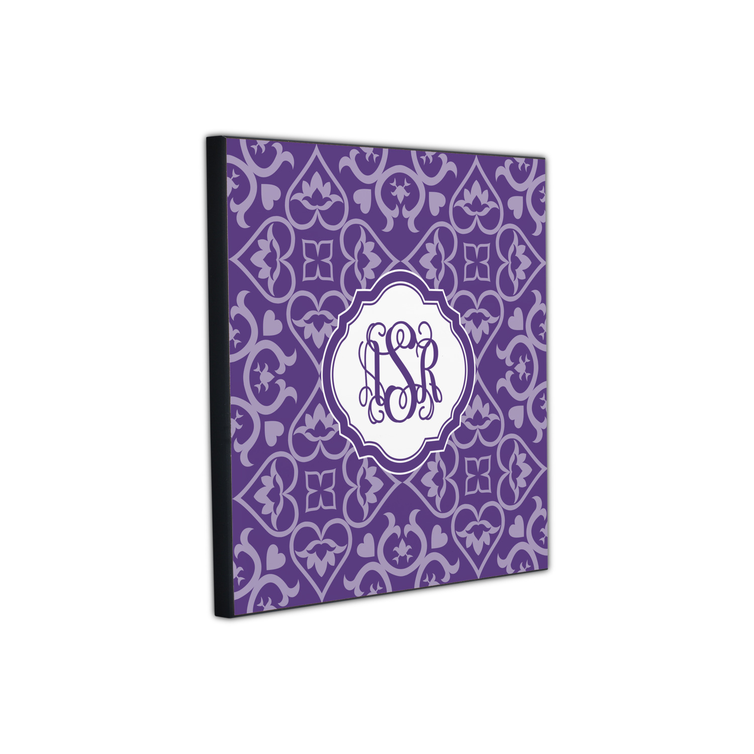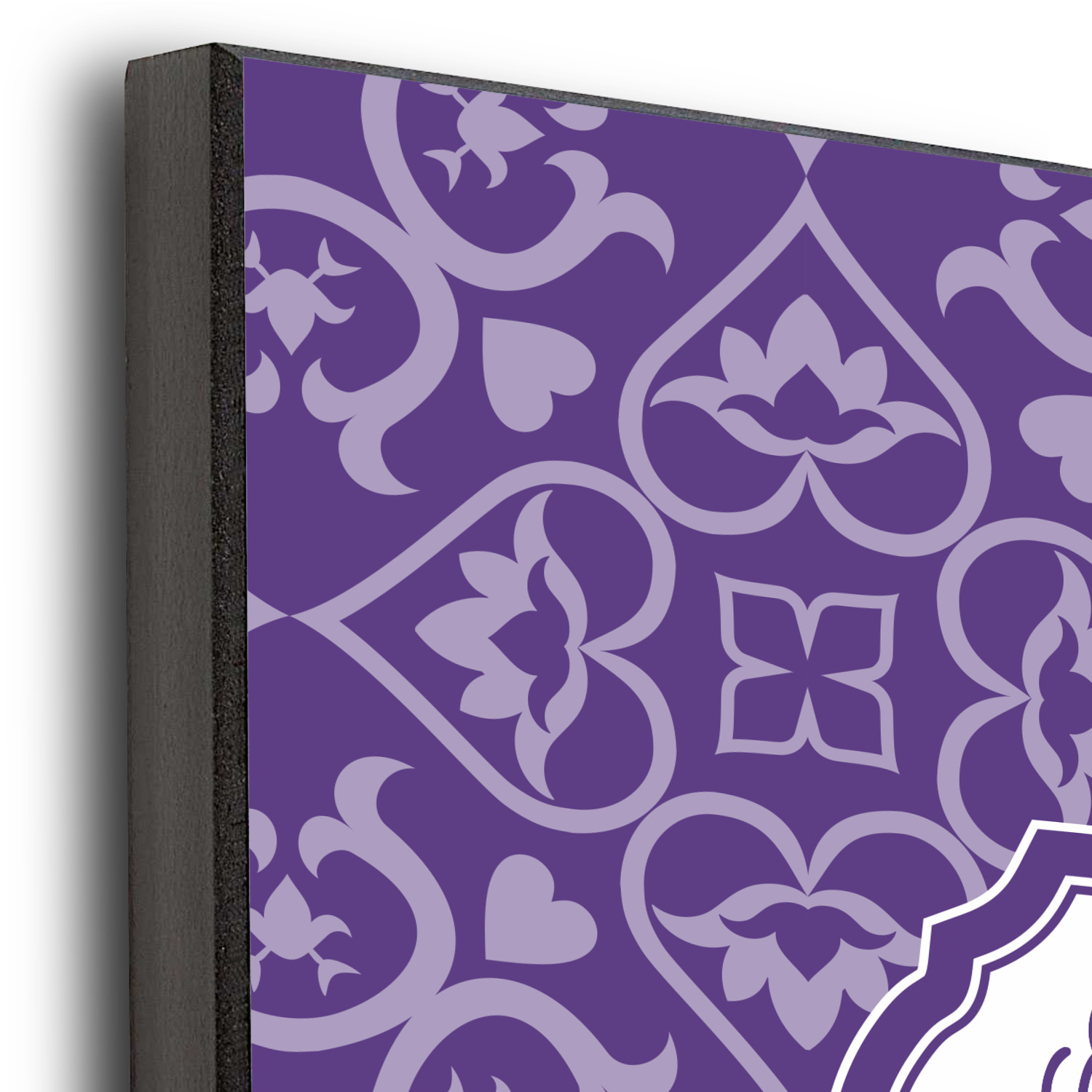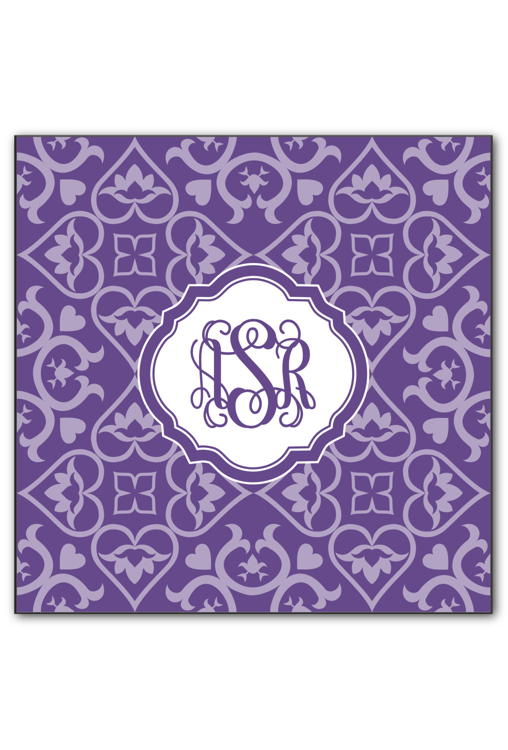 A purple scalloped label highlights a classic personalized monogram or the personalization of your choice.