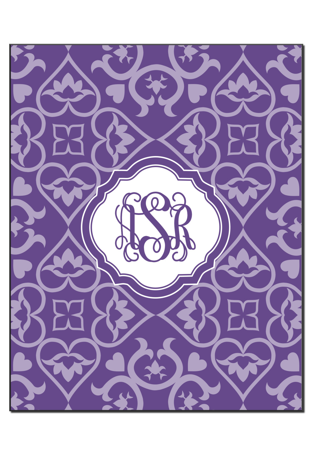 A purple scalloped label highlights a classic personalized monogram or the personalization of your choice.