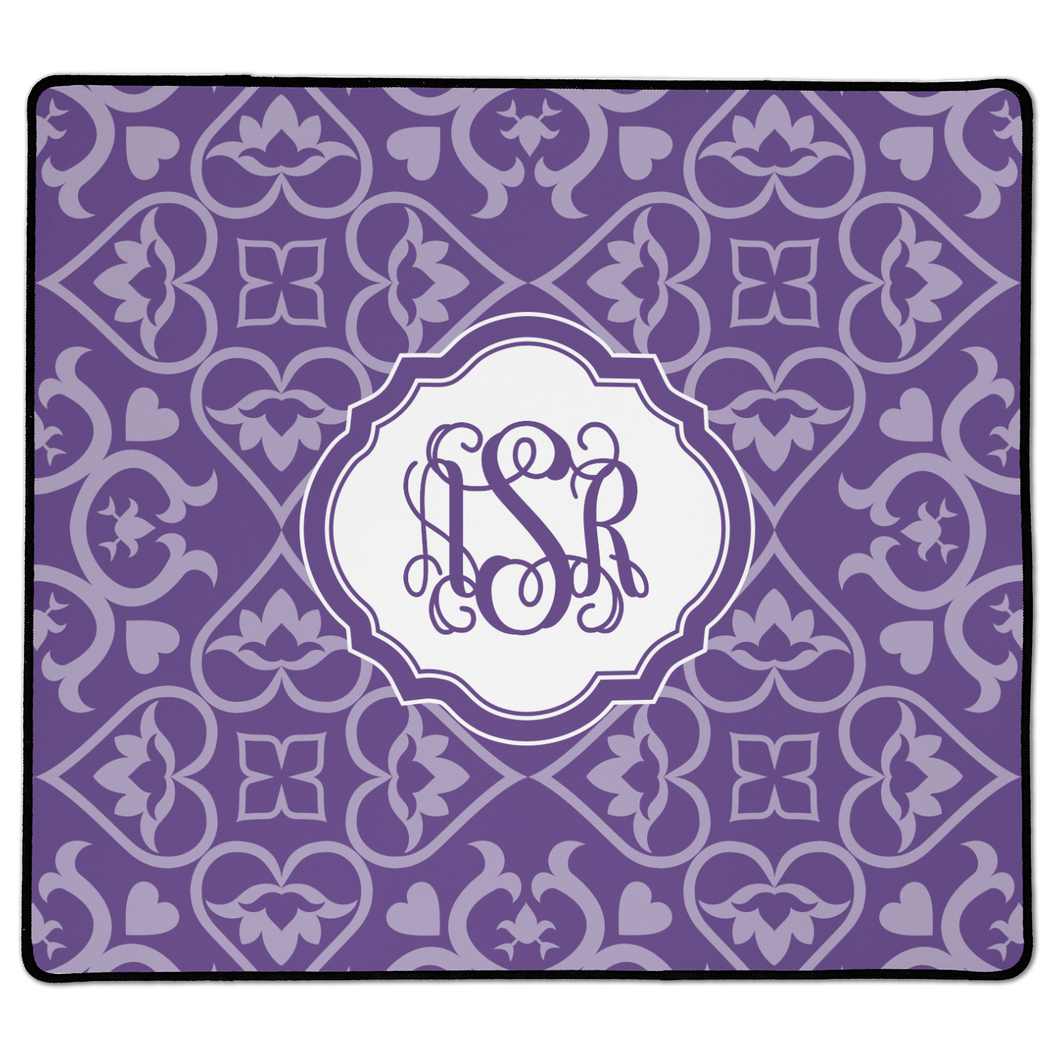 A purple scalloped label highlights a classic personalized monogram or the personalization of your choice.