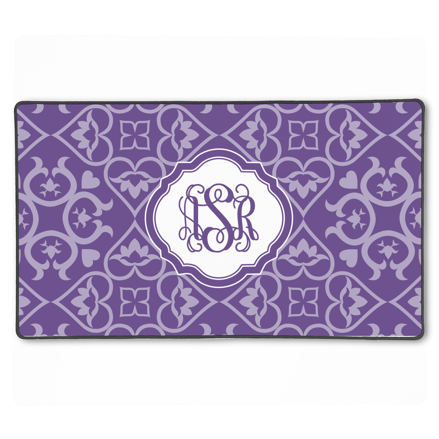 A purple scalloped label highlights a classic personalized monogram or the personalization of your choice.