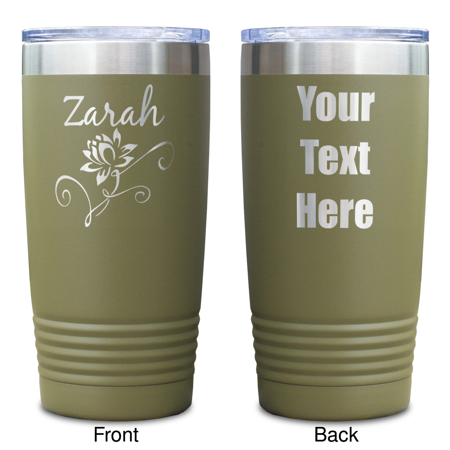Available in 8 unique colors, these cups are crafted from 18/8 stainless steel and powder coated for their durable finish. With the 8 colors being Black, Pink, Red, Teal, White, Grey, Royal Blue, and Olive Green, you are sure to find a cup to fit your personality. You can chose to engrave on the front or the front and back of the cup. Use our design studio to design your own cup and we laser engrave it for you.