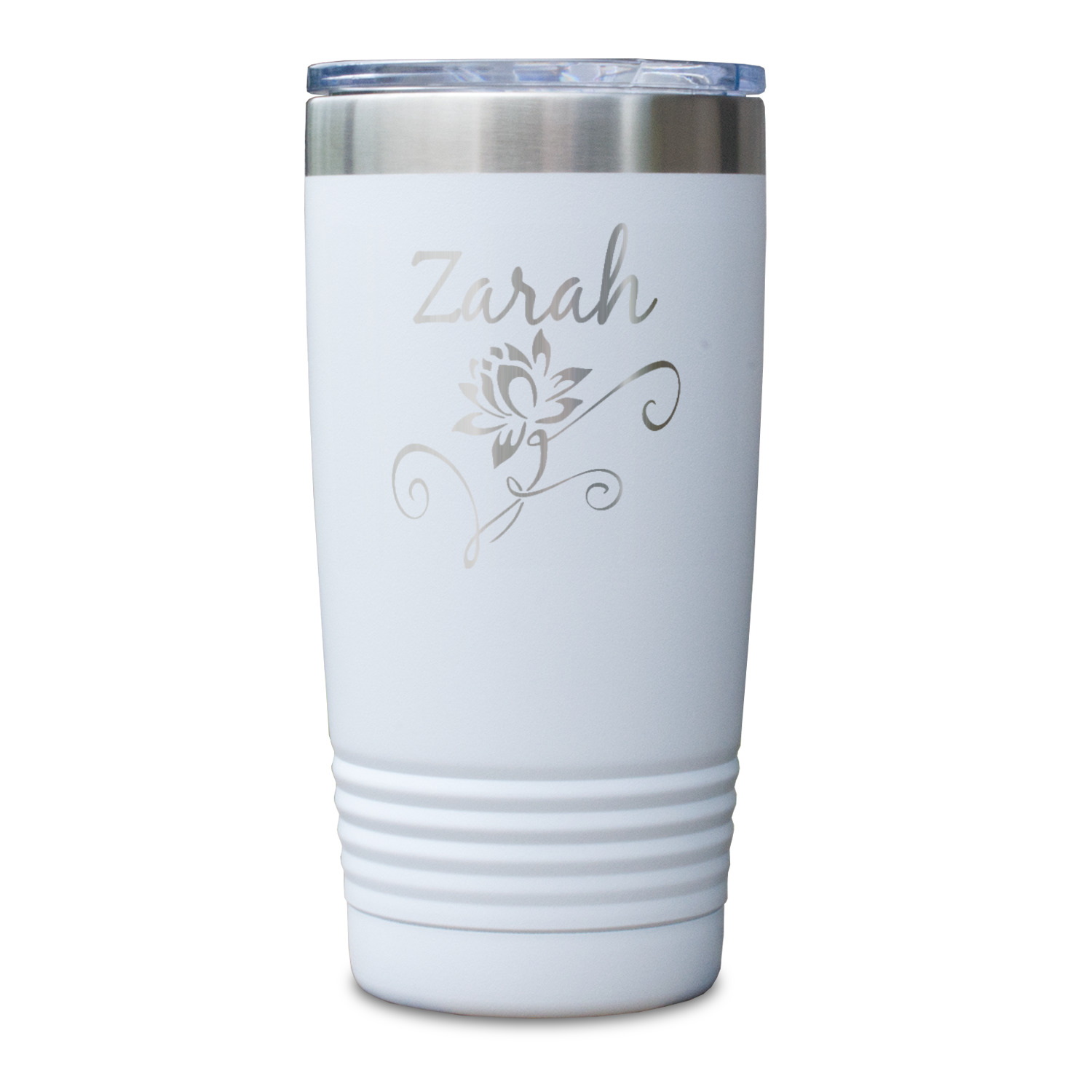 Available in 8 unique colors, these cups are crafted from 18/8 stainless steel and powder coated for their durable finish. With the 8 colors being Black, Pink, Red, Teal, White, Grey, Royal Blue, and Olive Green, you are sure to find a cup to fit your personality. You can chose to engrave on the front or the front and back of the cup. Use our design studio to design your own cup and we laser engrave it for you.