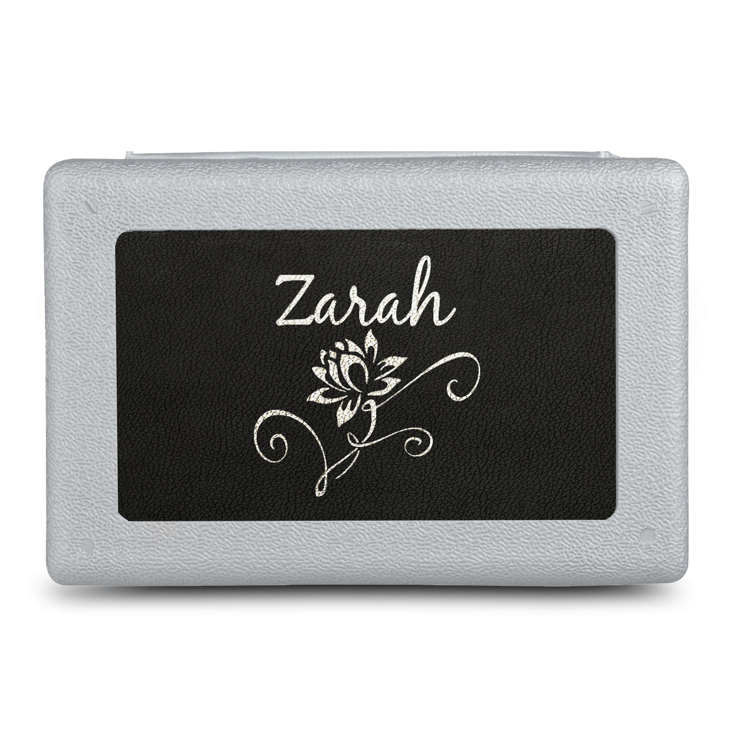A single lotus flower rests in the center label. Add the personalization of your choice underneath.