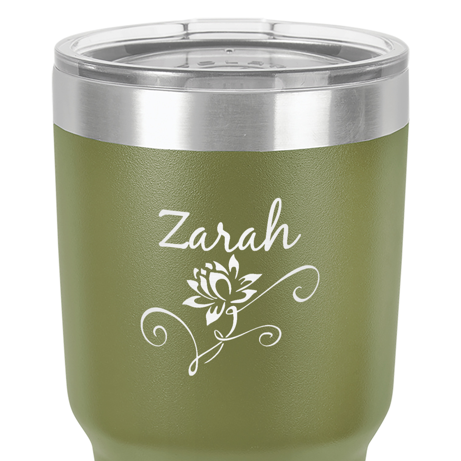 With our personalized 30 oz double wall stainless steel tumblers, you'll never have to settle for a plain, boring tumbler again! These tumblers will be a wonderful addition to your drinkware collection and will make those long commutes much brighter. Personalize one for yourself, or give these personalized tumblers as a gift to relatives, friends, or coworkers!