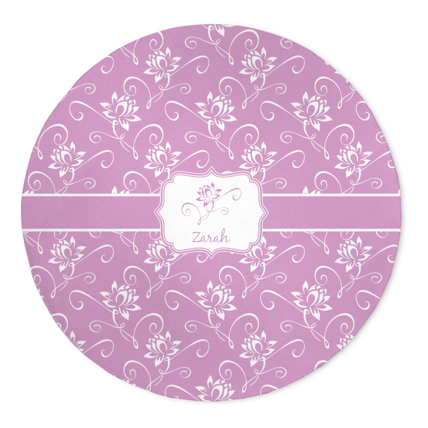 Our custom round area rugs and rectangular area rugs are both velvety soft and smooth, with a short pile, beautiful sewn corners and edges on the poly chenille face. We recommend adding an anti-slip mat under your round area rug to prevent it from sliding when under foot when placed on hard or smooth surfaces.