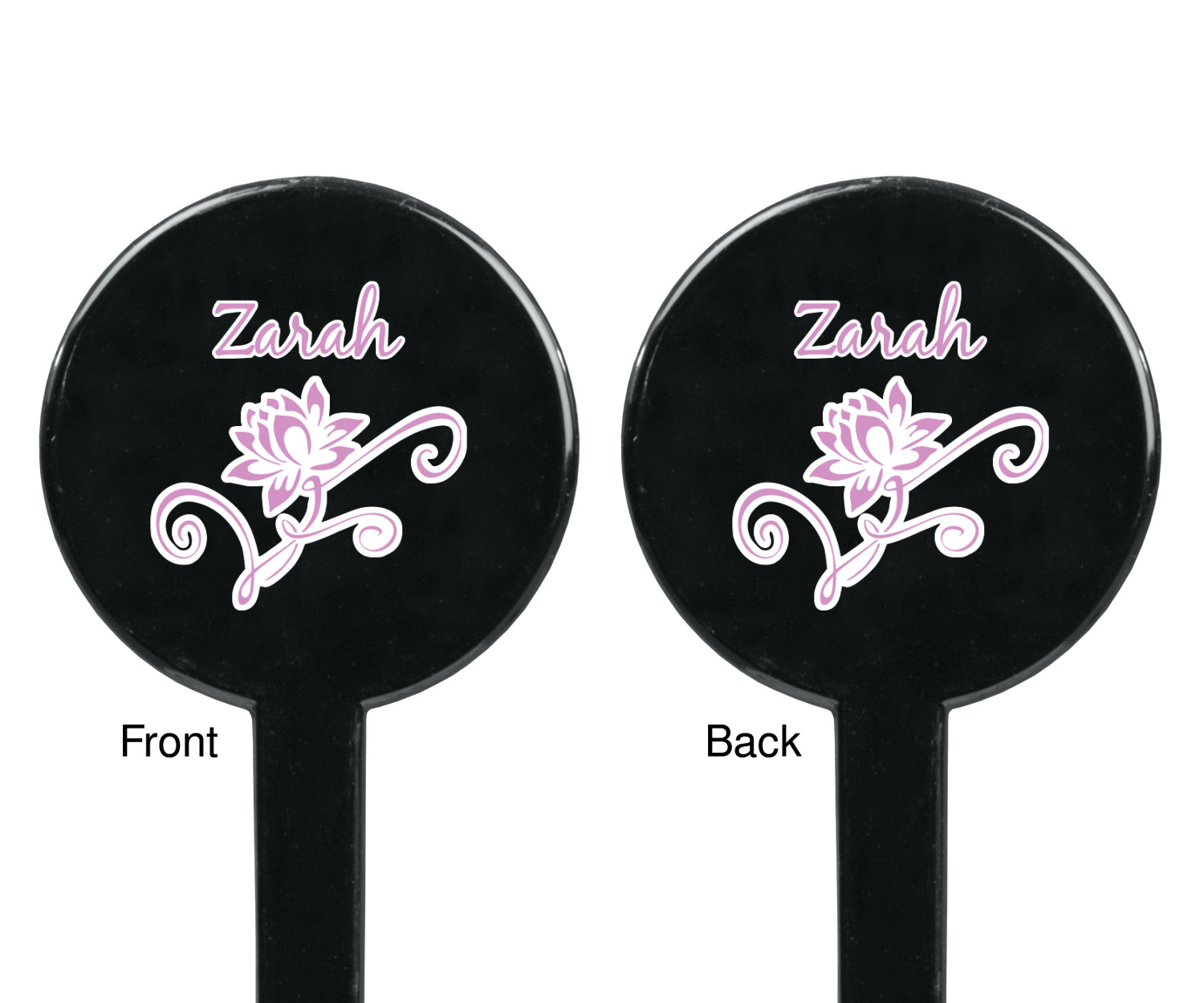 A single lotus flower rests in the center label. Add the personalization of your choice underneath.
