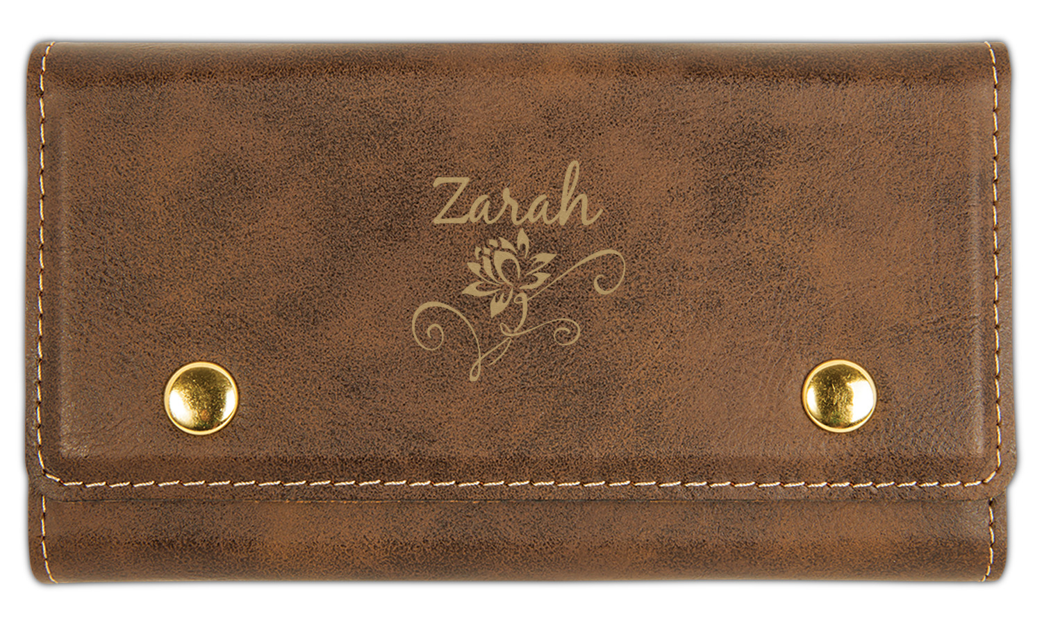 A single lotus flower rests in the center label. Add the personalization of your choice underneath.