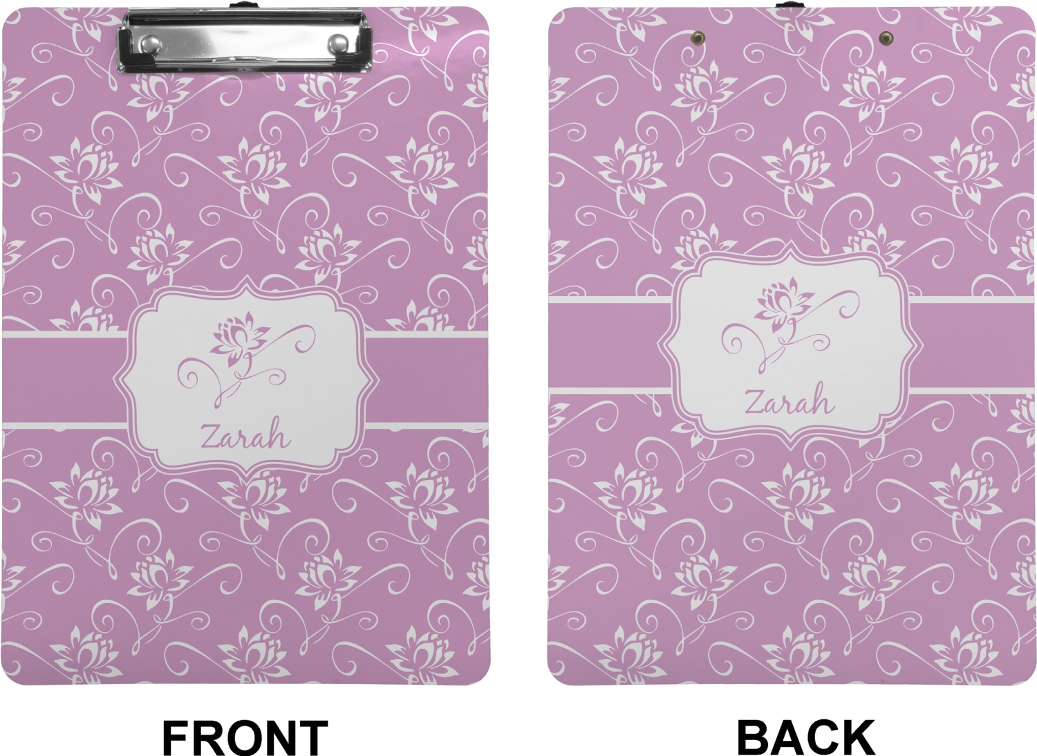 These custom clipboards are made from a strong hardboard and are coated with a glossy finish that accentuates the colors of your design. Alongside a retractable hook at its top, these decorative clipboards also feature sturdy clips to secure several sheets of paper. We sell these clipboards in two separate sizes. Our letter size measures at 12.5" L x 9" W, while our legal clipboard is approximately 15.5" L x 9" W. On both models, your personalization is printed on both sides of this clipboard and can be customized individually.