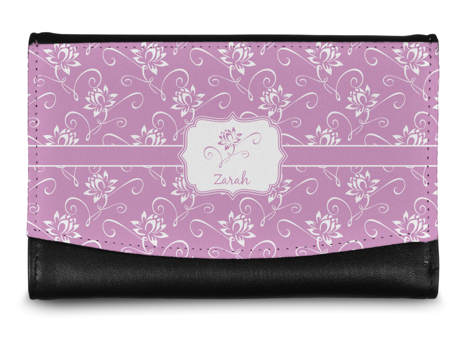 The compact size of this wallet - 5.5in wide, 3.5in tall and 0.75in thick when folded - makes it perfect to hold in hand and small enough to fit in a clutch or a normal size purse. The outside flap is customized with your choice of artwork and closes with a snap closure - with two different snaps to allow it to be adjusted when storing more items - to securely fasten the flap.
