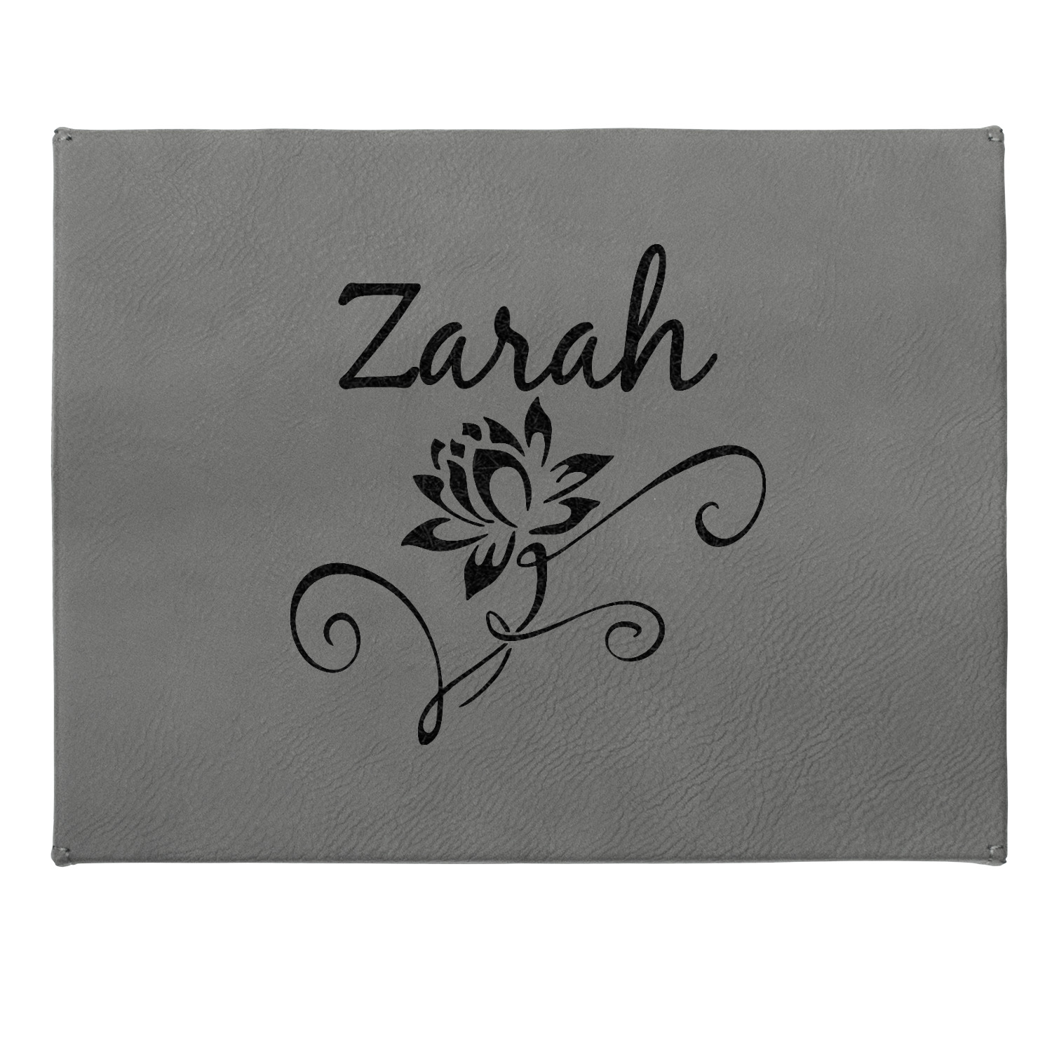 A single lotus flower rests in the center label. Add the personalization of your choice underneath.