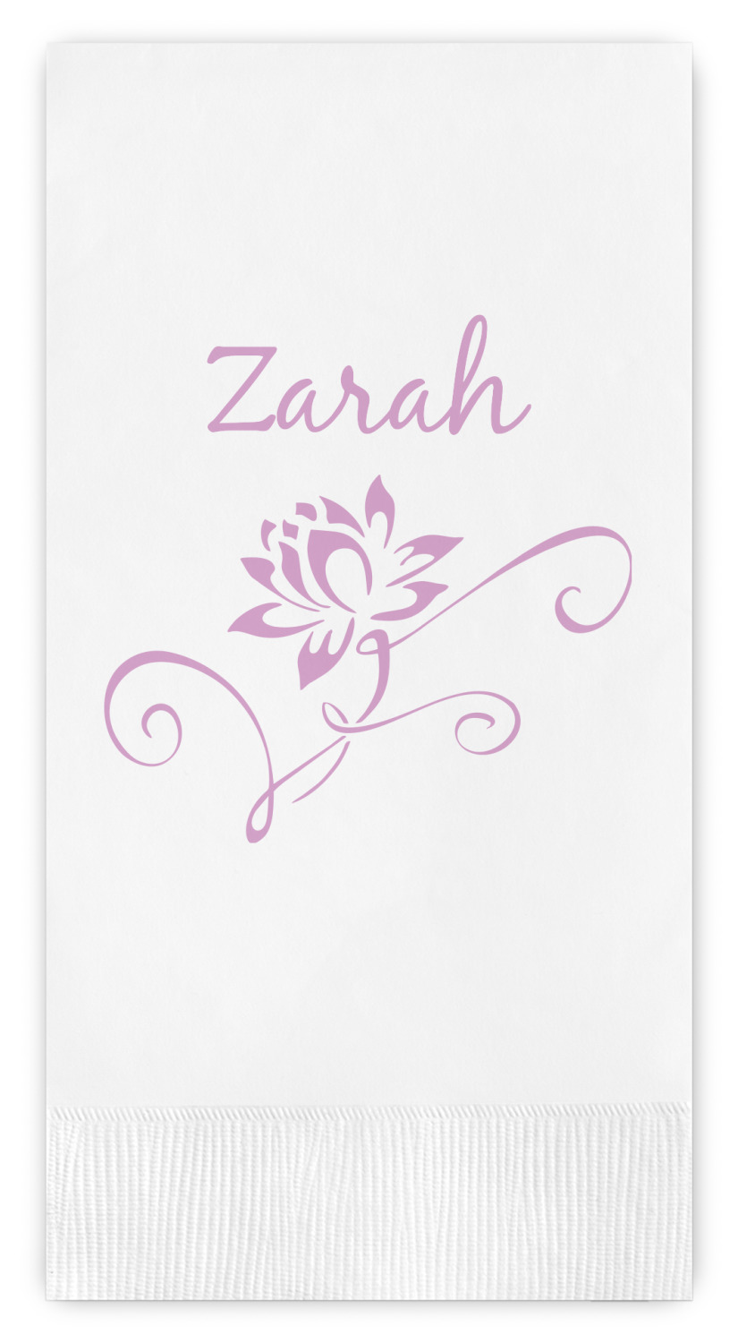 A single lotus flower rests in the center label. Add the personalization of your choice underneath.