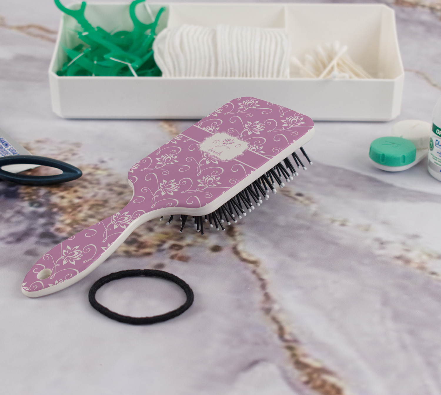 Our paddle style customizable hair brushes are perfect for all hair types- straight, curly, wavy, long, short, thick or textured.
