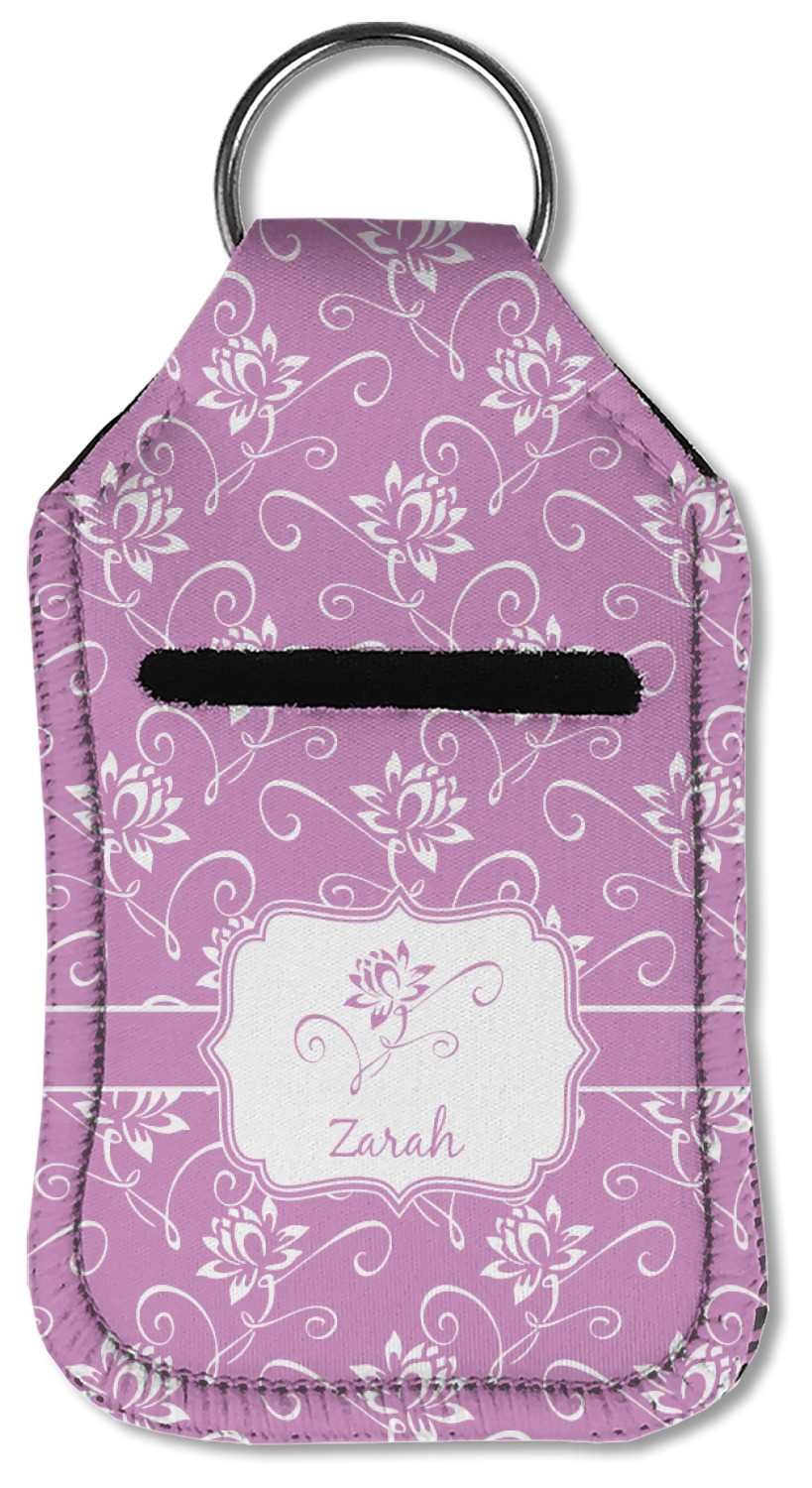 Each hand sanitizer holder comes with its own empty travel-sized, refillable hand sanitizer sure to fit snug in your customized sanitizer case! Our hand sanitizer cases are a durable, yet soft neoprene material sure to last any daily activities or travel agenda. Customize and personalize a hand sanitizer bottle holder with one of our two sizes - small (4.25" x 2.25") or large (5.5" x 2.5"). Each travel sanitizer holder comes with a keyring for attachment on bags, keys, or more!