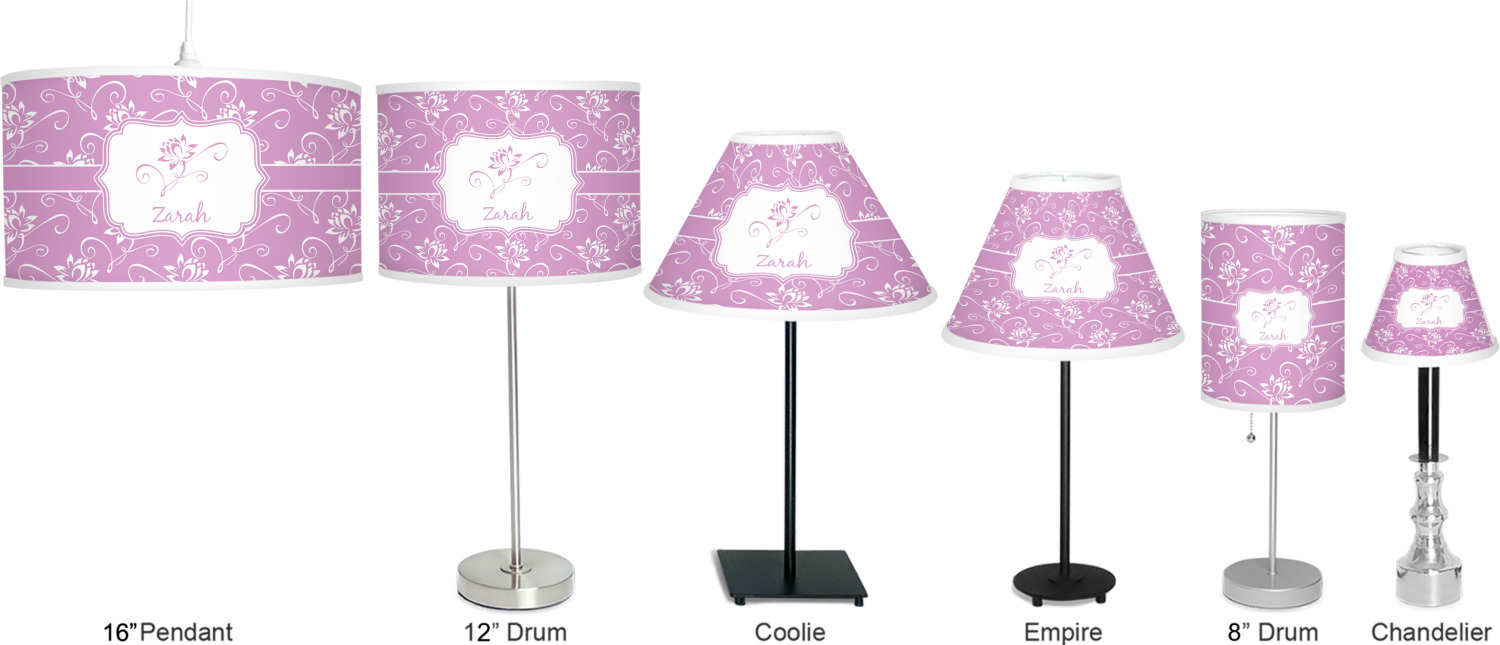 This shade comes with a base that easily attaches to the round fixture on the inside of the lamp. The base is sleek and straight with a round base at the bottom. It is silver so that it goes with anything!