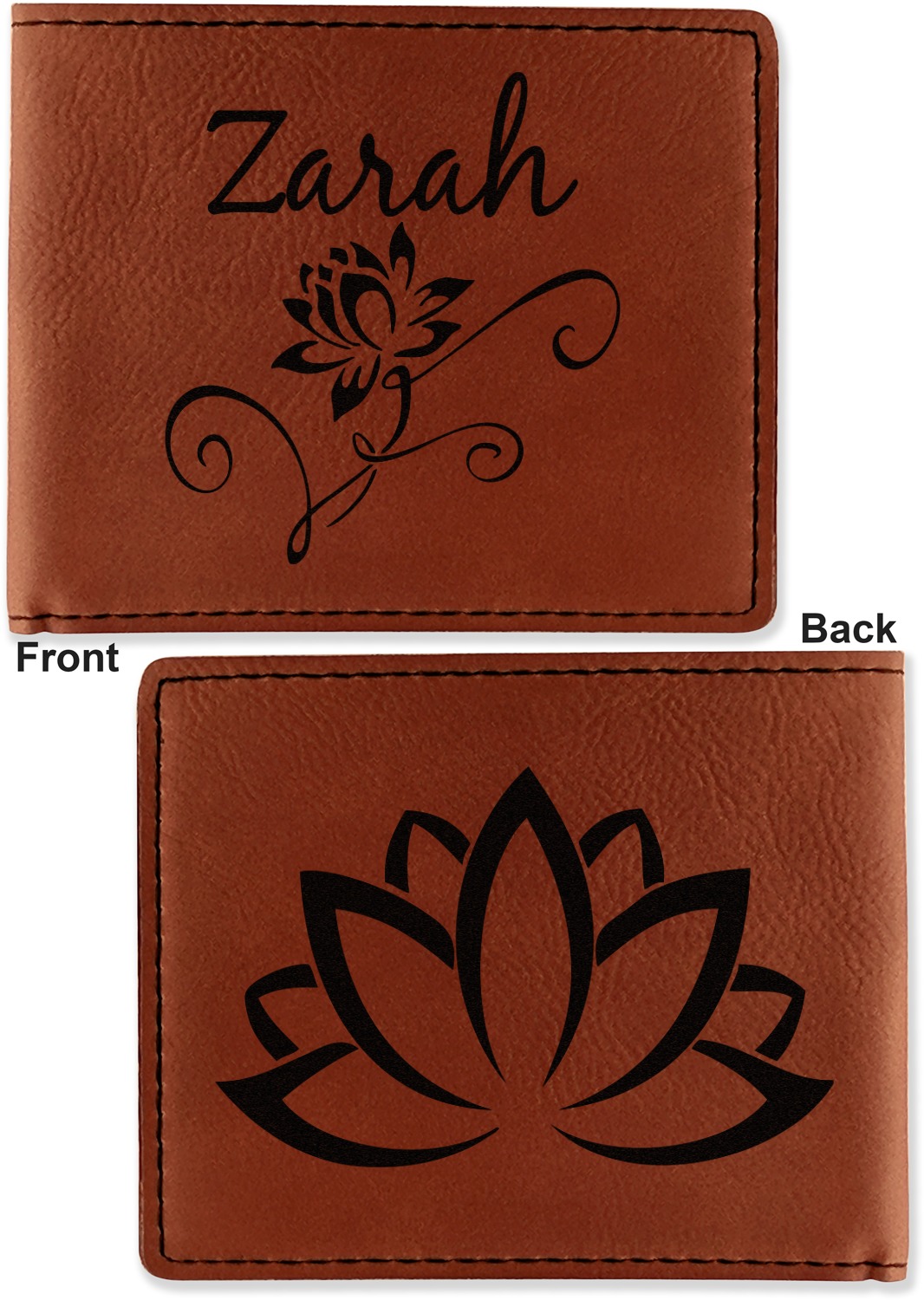 Your bifold wallet will be personalized by laser engraving, which will be a black color on the wallet. Choose a graphic, text, or monogram to personalize your wallet. There are thousands of choices in our design center.
