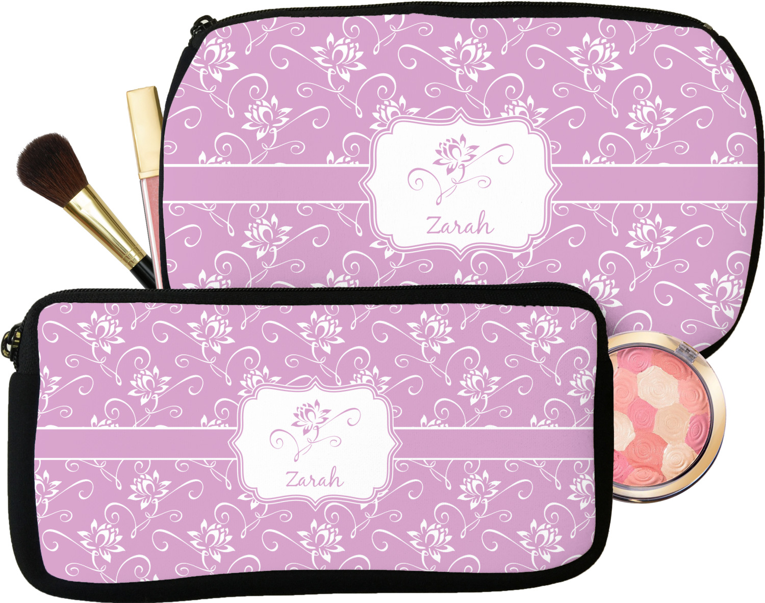 Every girl and woman carries makeup and cosmetics in her purse. Why not carry your makeup in these beautiful custom made and personalized makeup bags. These cosmetic bags also make a great bridesmaid gift.