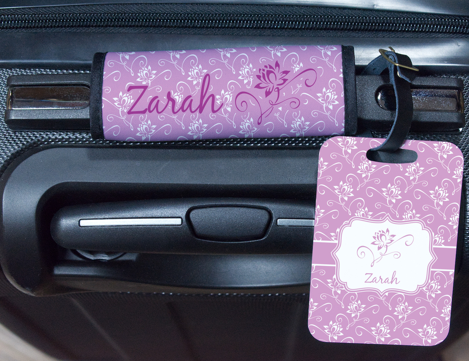 A single lotus flower rests in the center label. Add the personalization of your choice underneath.