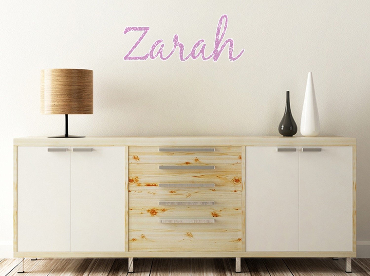 These custom stickers are machine-printed and cut from high quality, white vinyl that comes with a removable adhesive. This adhesive can be detached easily when needed, thus ensuring a simple and clean removal of the name or text. These vinyl stickers provide the best results when applied to wall surfaces that are smooth, slightly textured, or painted. This includes, but is not limited to, semi-gloss and gloss paint finishes. Your wall decor stickers will also cling to a variety of other surfaces, such as metal, painted and wood furniture, doors, windows, mirrors, and glass.