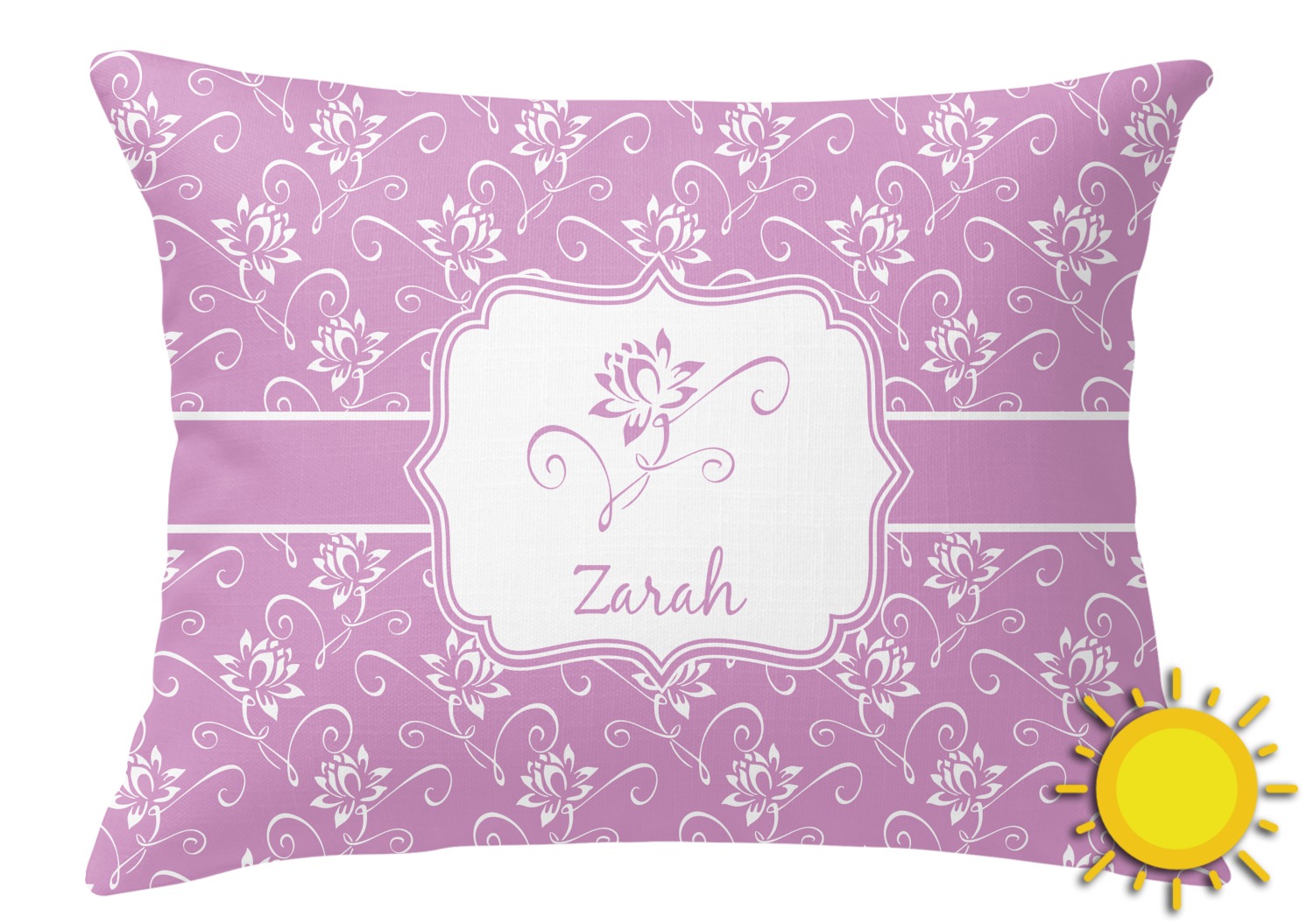 A single lotus flower rests in the center label. Add the personalization of your choice underneath.