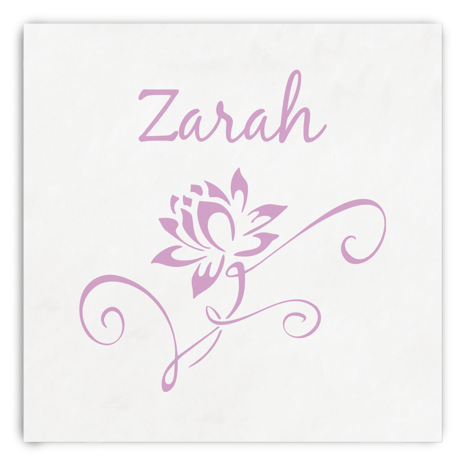 A single lotus flower rests in the center label. Add the personalization of your choice underneath.