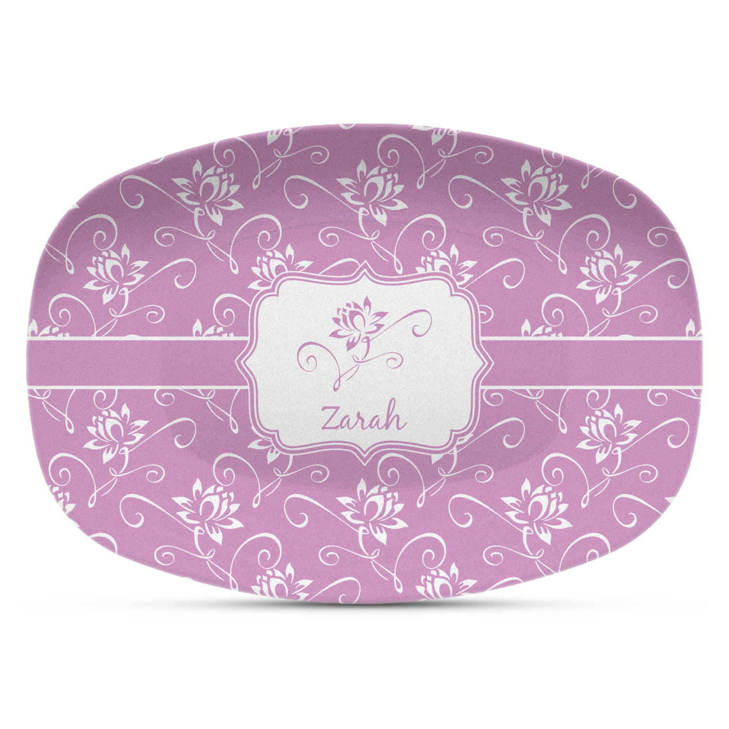 These serving platters are made from a composite, thermo-set, polymer plastic that gives it the versatility, durability, and weight of a melamine platter, without any of the downsides of melamine. These personalized platters, can withstand temperatures up to 250 degrees Fahrenheit, for up to 60 minutes. No harmful chemicals, such as BPA, formaldehyde, and DEHPs were used in the manufacturing of this product. This large serving platter measures at 14" x 10.25", and is spacious enough to hold any of your appetizers or bite-sized desserts. The platter exhibits your personalization across the entirety of its front.