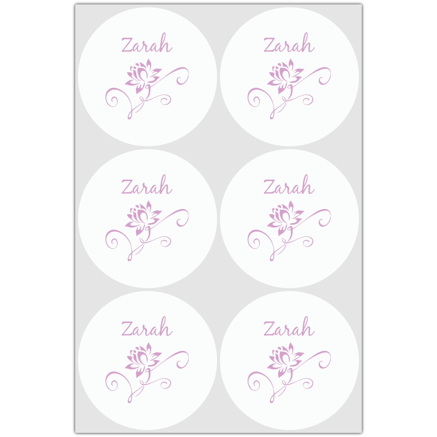 A single lotus flower rests in the center label. Add the personalization of your choice underneath.
