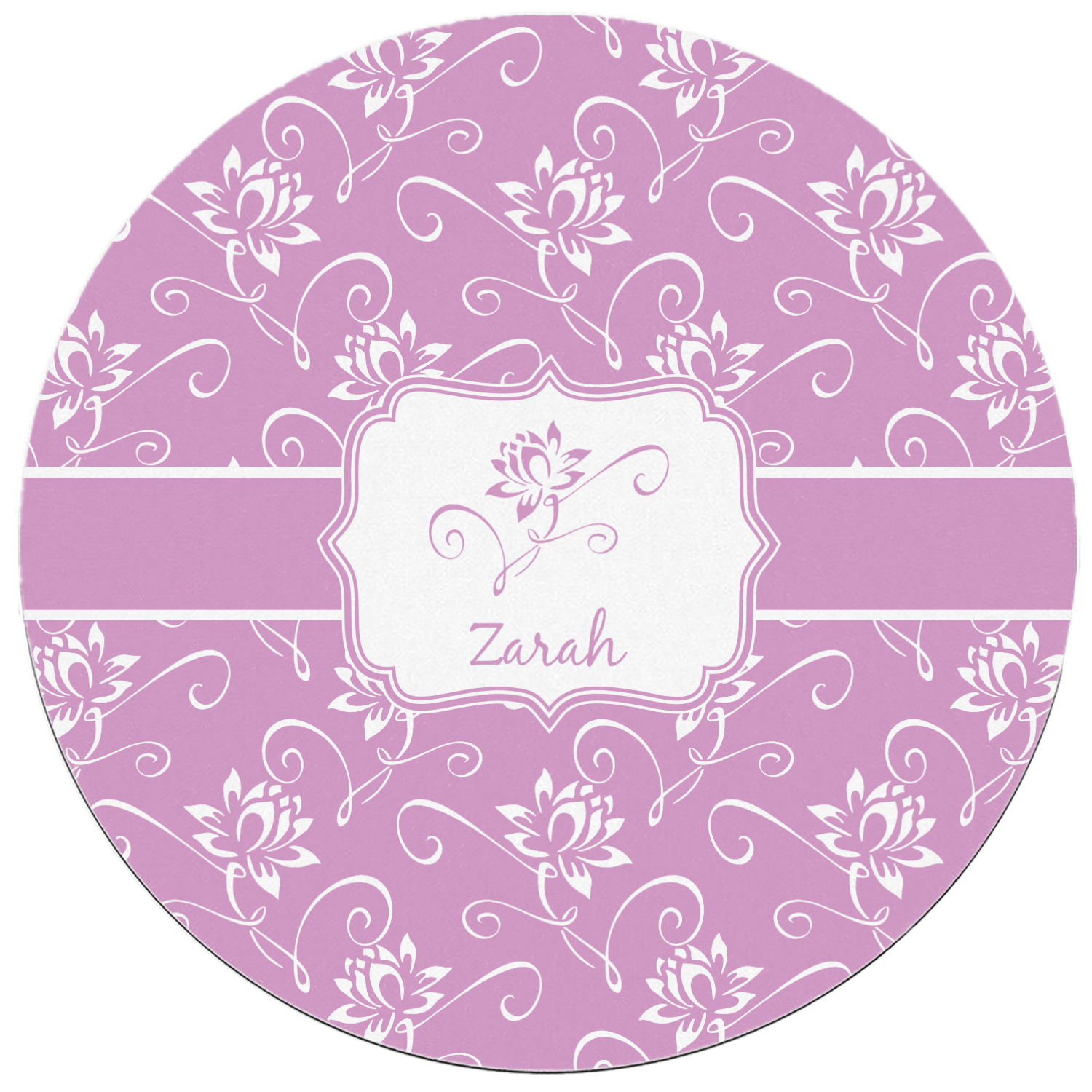 A single lotus flower rests in the center label. Add the personalization of your choice underneath.