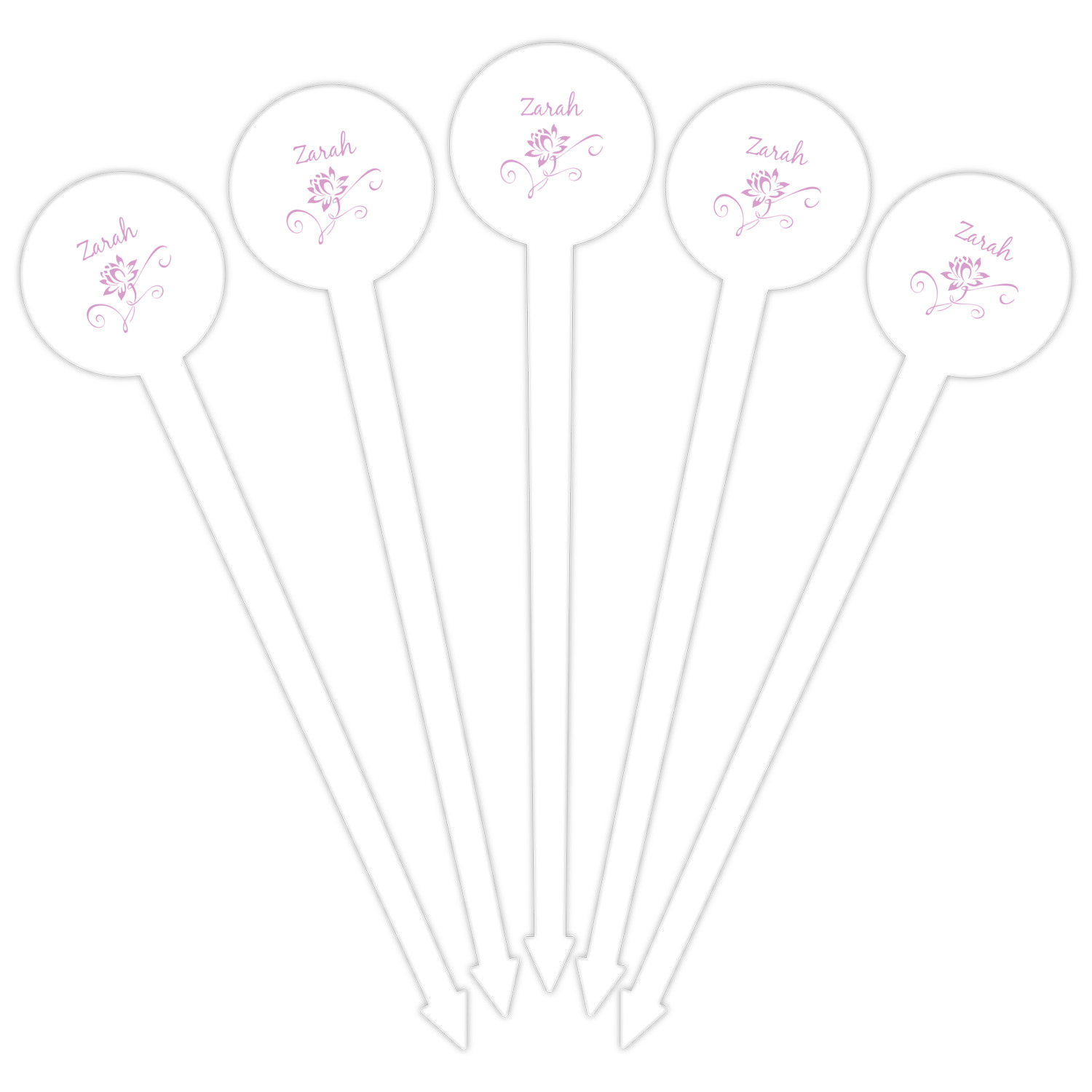 Our plastic cocktail picks have a round disc on top that is printed in full color with your event theme, colors, your logo, your photo, names, initials, monograms etc.