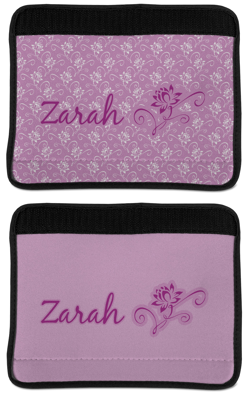 Made from neoprene, our seat belt strap covers wrap around the belt itself and have a Velcro tab for easy attachment and closure. The belt's edges are trimmed with a black polyester for a secure finish. Each cover is 9.5 by 7 inches when open and 9.5 by 2.5 inches when closed. We print your personalized design on the face of the seat belt pad.