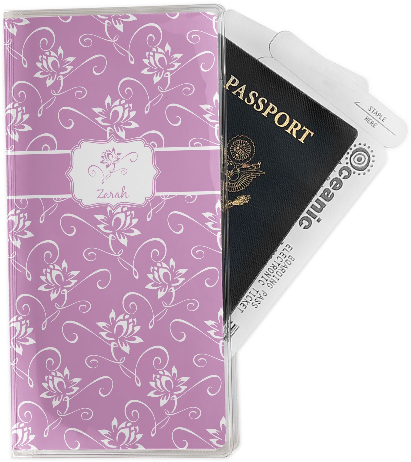 This document holder is really sturdy and has your personalized design inserted right behind all of your nifty pockets, so you can see it on the front and back covers. There are two large pockets and two shorter pockets inside. The larger pockets are tall enough to keep your boarding pass nice and straight. The smaller pockets (on top of the large pockets) are large enough to fit your passport, credit card, or ID.