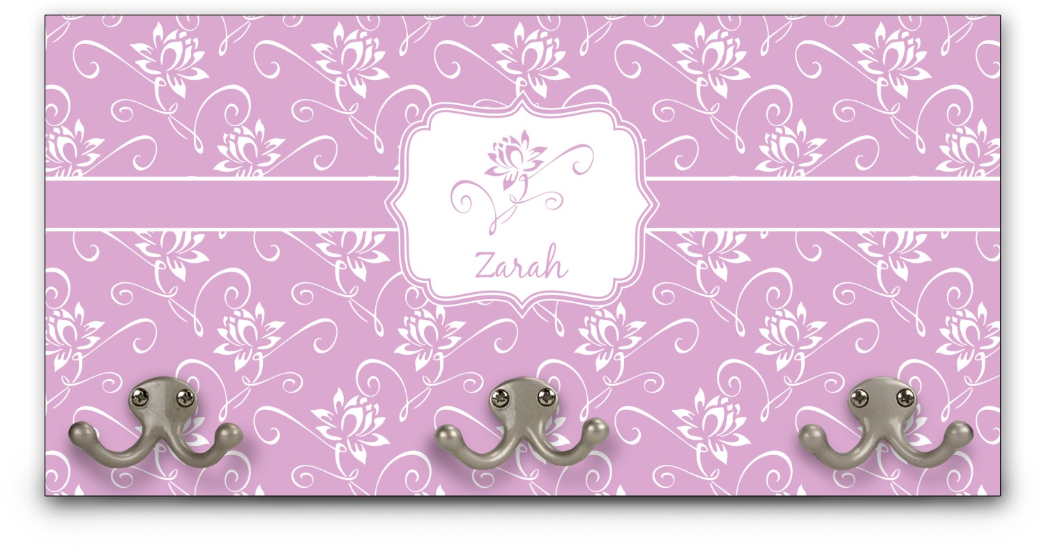 This coat rack is the perfect way to add some personality to your wall or entryway. The board is made of a strong maple that is approximately 16" x 8". The three 2-prong hooks are a sturdy metal that have three screws attaching them to the board. Your design is printed right onto the front of the board while the back and sides are a simple black.