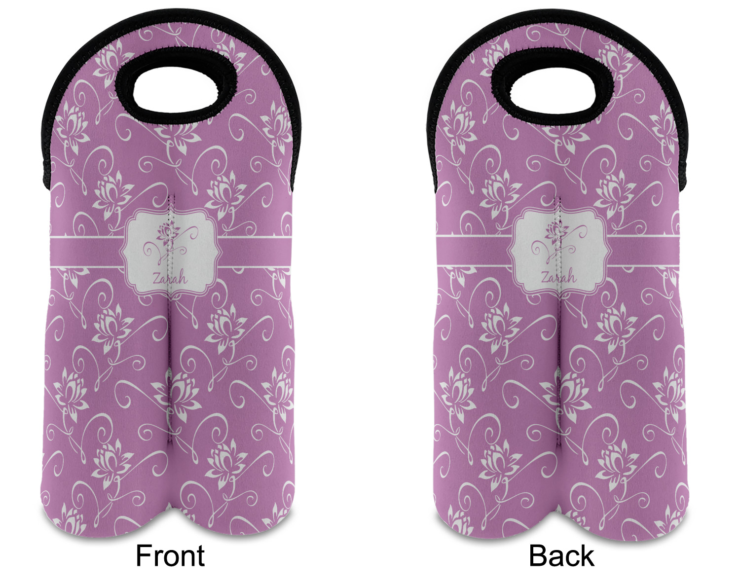 These tote bags are insulated to keep the bottles cold and have a stitched separation down the middle and double handles to keep the two bottles safe and secure during travels.