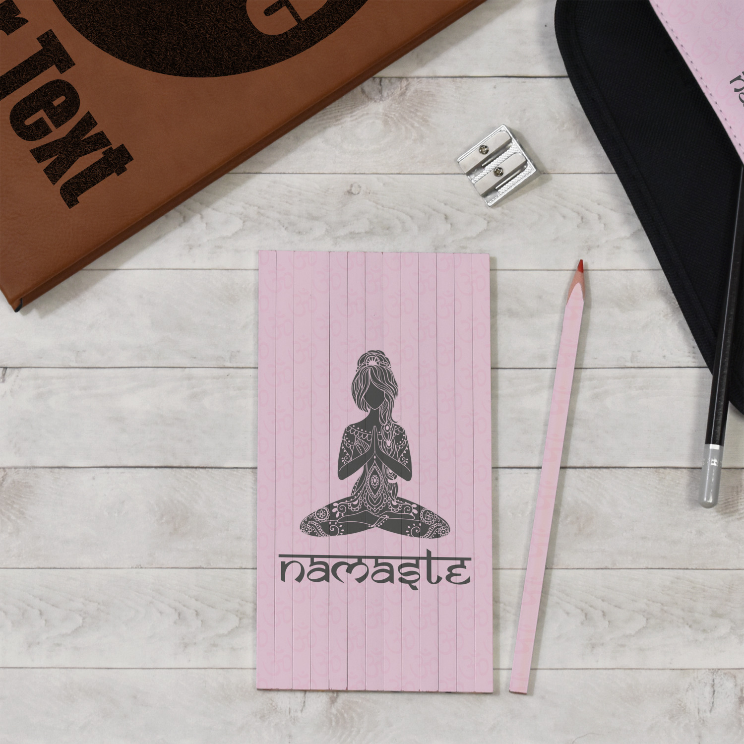 If you are a yogi, you will love this design as it is serene, calm and has all things yoga; the lotus pose with prayer hands, om background and the Namaste for the personalization in a beautiful Sanskrit font.
