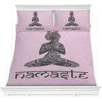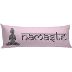 This design is customizable. We chose to use the om background with two shades of pink. We have other yoga backgrounds that you can choose from. We chose the large graphic and text style, where the graphic is of a beautiful woman sitting in lotus pose with prayer hands in pink and dark grey. We have many different yoga graphics that you can choose from including the tree pose and meditation pose. We chose to use the word Namaste in the Sanskrit font. You can choose the personalization, the font and the colors.