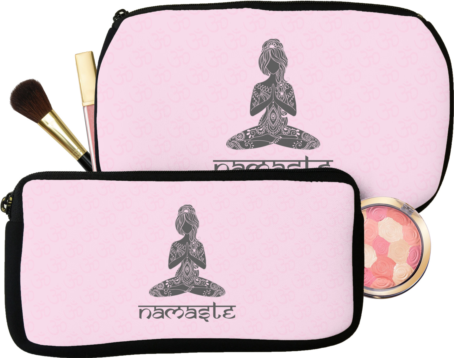 Our personalized makeup bags are available in many different designs, patterns and colors - so you are sure to find one that will love. They are made of neoprene (same material as wet-suits) and thus are water resistant, so spillages in your makeup bag will not end up all over you purse. They are customized on one side and are black on the other side and the zipper is black as well.