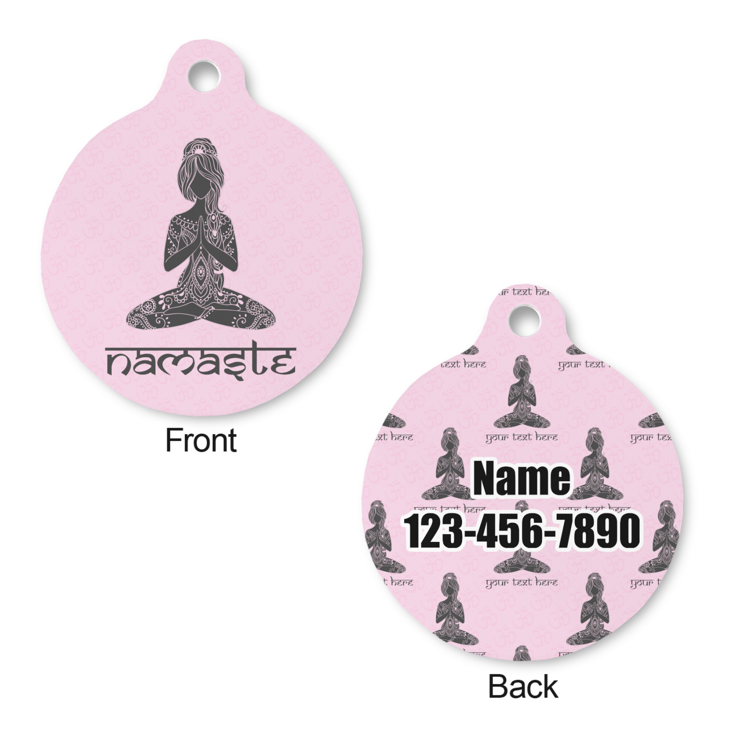 Go ahead; skip the monotony of plain pet ID tags with your very own, customized & personalized, round pet tag! This pet ID tag, fitting for both cats and dogs, will catch the eye of any onlooker (humans, canines, and felines, alike!) and accentuate your pet's individual personality.