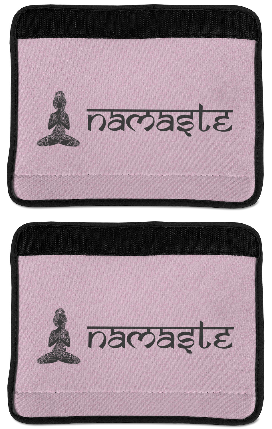Made from neoprene, our seat belt strap covers wrap around the belt itself and have a Velcro tab for easy attachment and closure. The belt's edges are trimmed with a black polyester for a secure finish. Each cover is 9.5 by 7 inches when open and 9.5 by 2.5 inches when closed. We print your personalized design on the face of the seat belt pad.