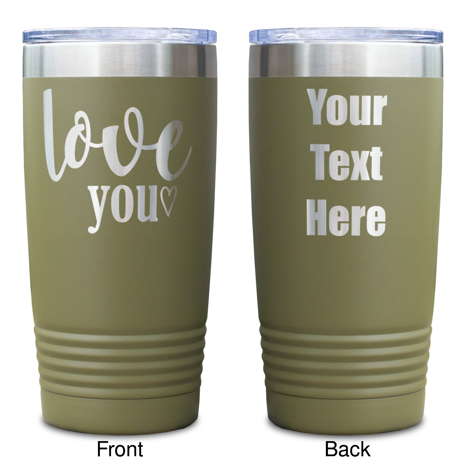 Available in 8 unique colors, these cups are crafted from 18/8 stainless steel and powder coated for their durable finish. With the 8 colors being Black, Pink, Red, Teal, White, Grey, Royal Blue, and Olive Green, you are sure to find a cup to fit your personality. You can chose to engrave on the front or the front and back of the cup. Use our design studio to design your own cup and we laser engrave it for you.