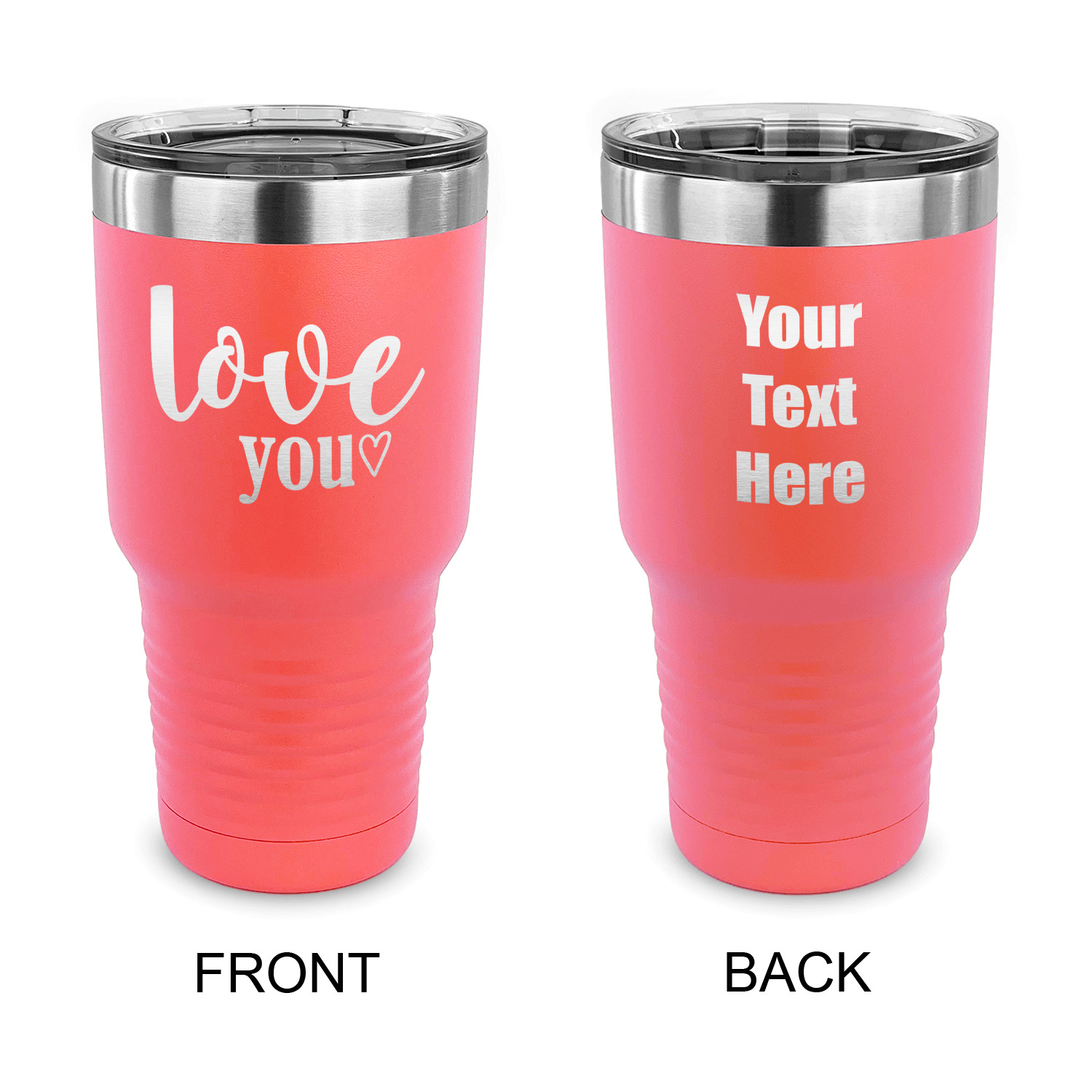 With the 5 colors - Black, Navy, Red, Pink and Coral, you are sure to find a cup to fit your personality. You can chose to engrave on the front or the front and back of the cup. Use our design studio to design your own cup and we laser engrave it for you.