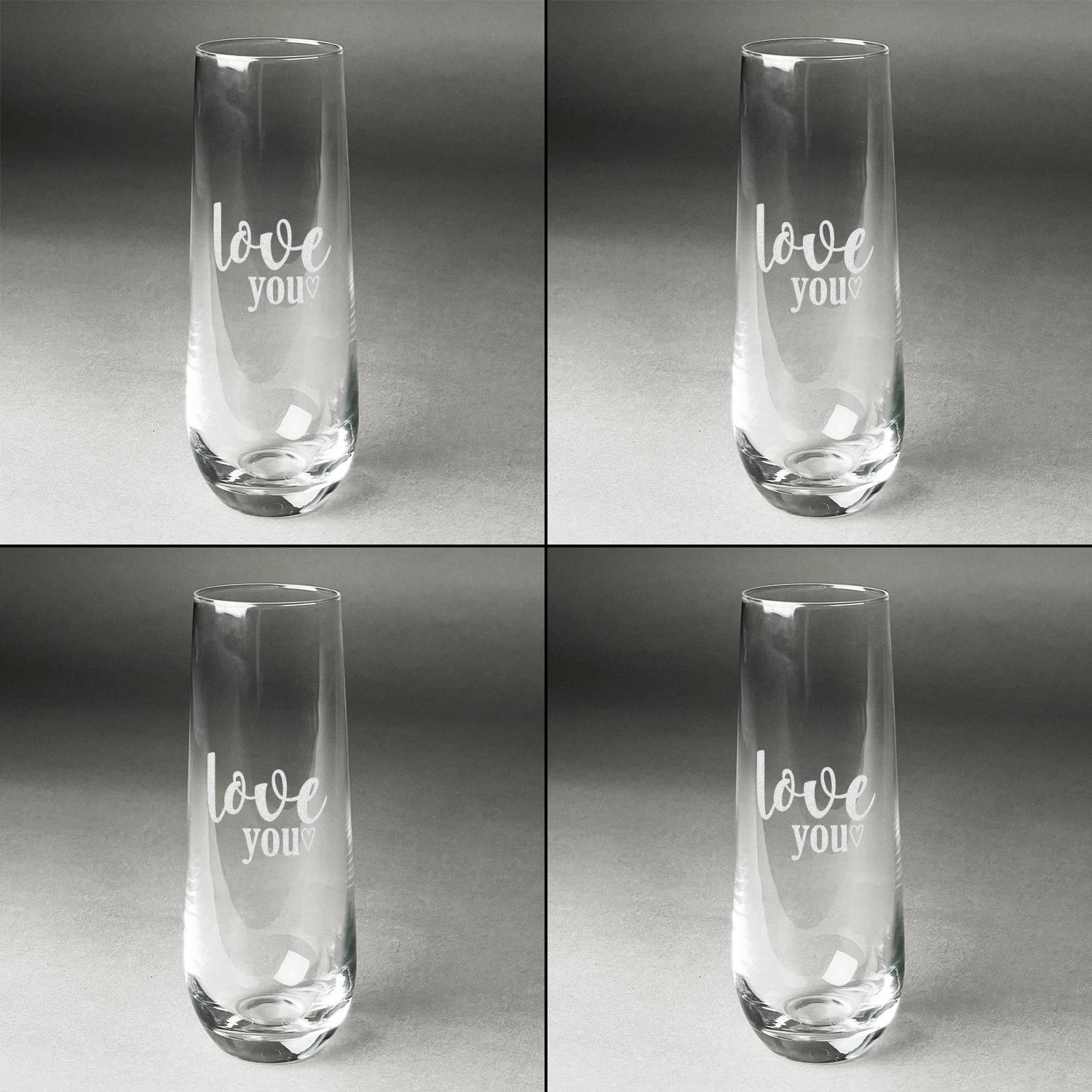Design your custom stemless champagne flutes and we will then laser engrave your unique design on them for you. Whether they are a special gift for a bride and groom, for your New Years Eve party, or a bachelorette party you are sure to be able to add a custom personalized touch to make them perfect for the occasion.