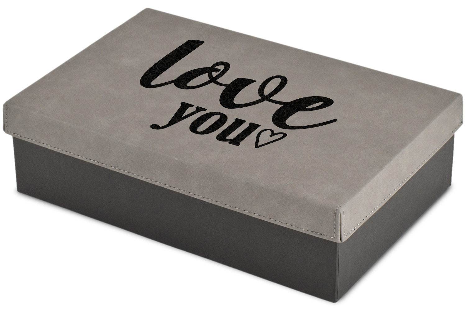 These gift boxes are available in 3 different sizes to accommodate various sized gifts. Available in gray as a neutral color for any occasion as well as to showcase your design boldly. Engraved with a laser this high quality paper board and faux leather gift box is unique and makes any gift stand out.