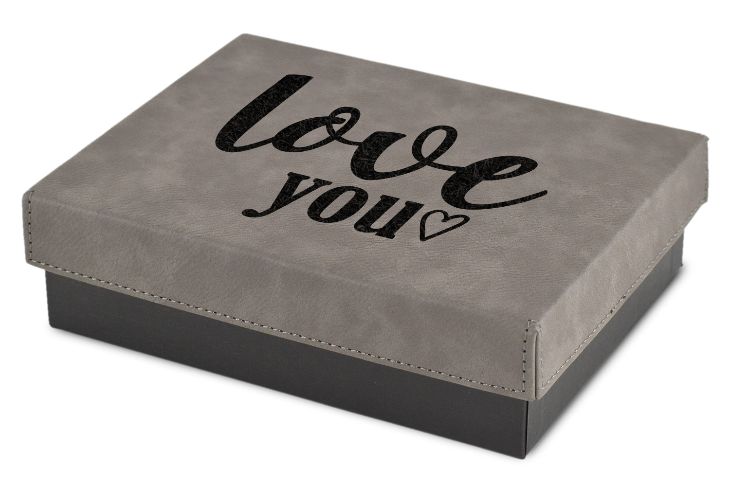 These gift boxes are available in 3 different sizes to accommodate various sized gifts. Available in gray as a neutral color for any occasion as well as to showcase your design boldly. Engraved with a laser this high quality paper board and faux leather gift box is unique and makes any gift stand out.