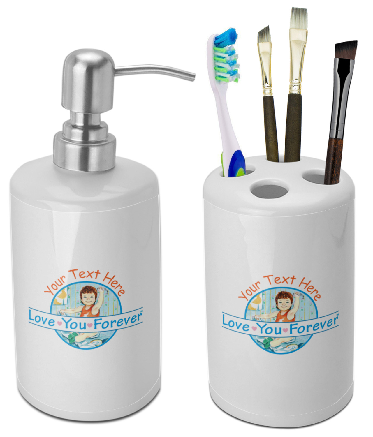 This two piece, ceramic bathroom set will add the perfect splash of color to any bathroom. This set includes one pump dispenser, ideal for soap or lotion, and one toothbrush holder with four holes. Although originally designed for toothbrushes, the holder will also hold make-up brushes, nail files, and other bathroom tools.