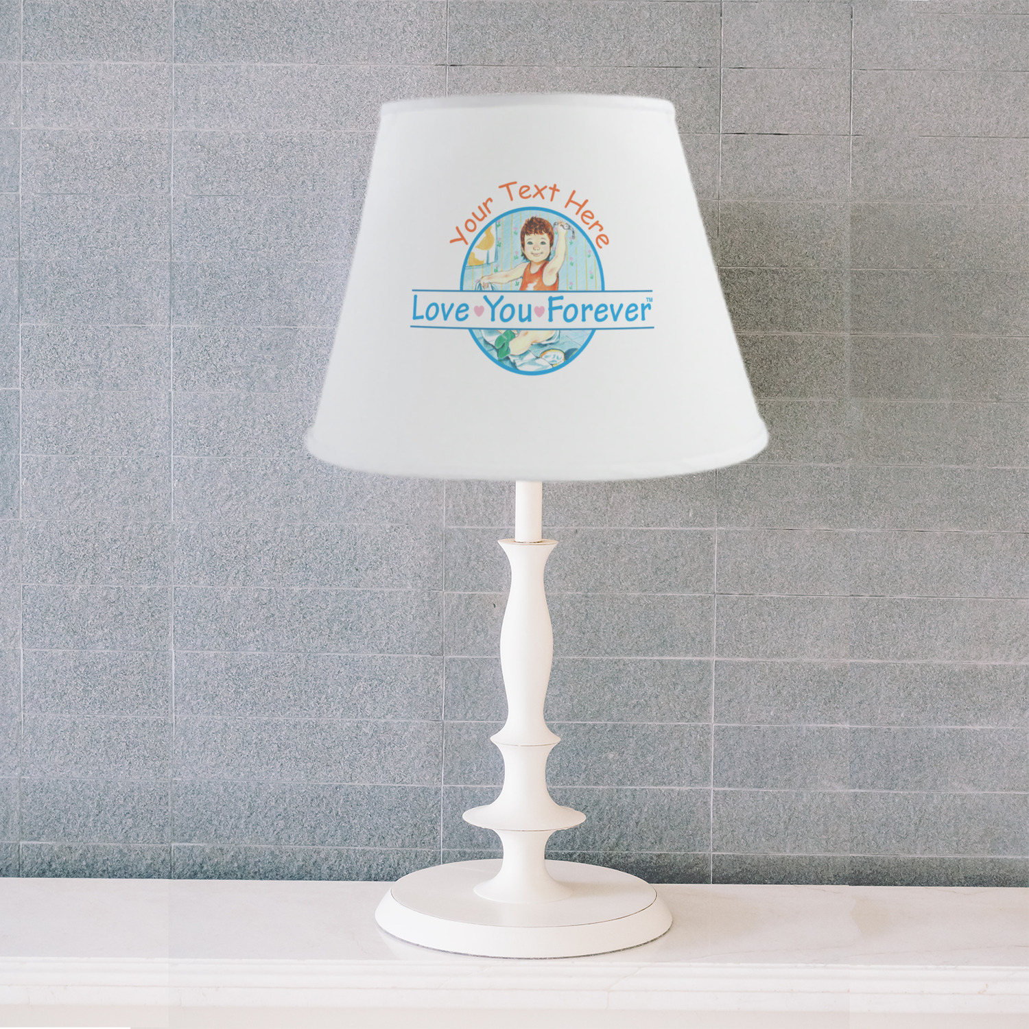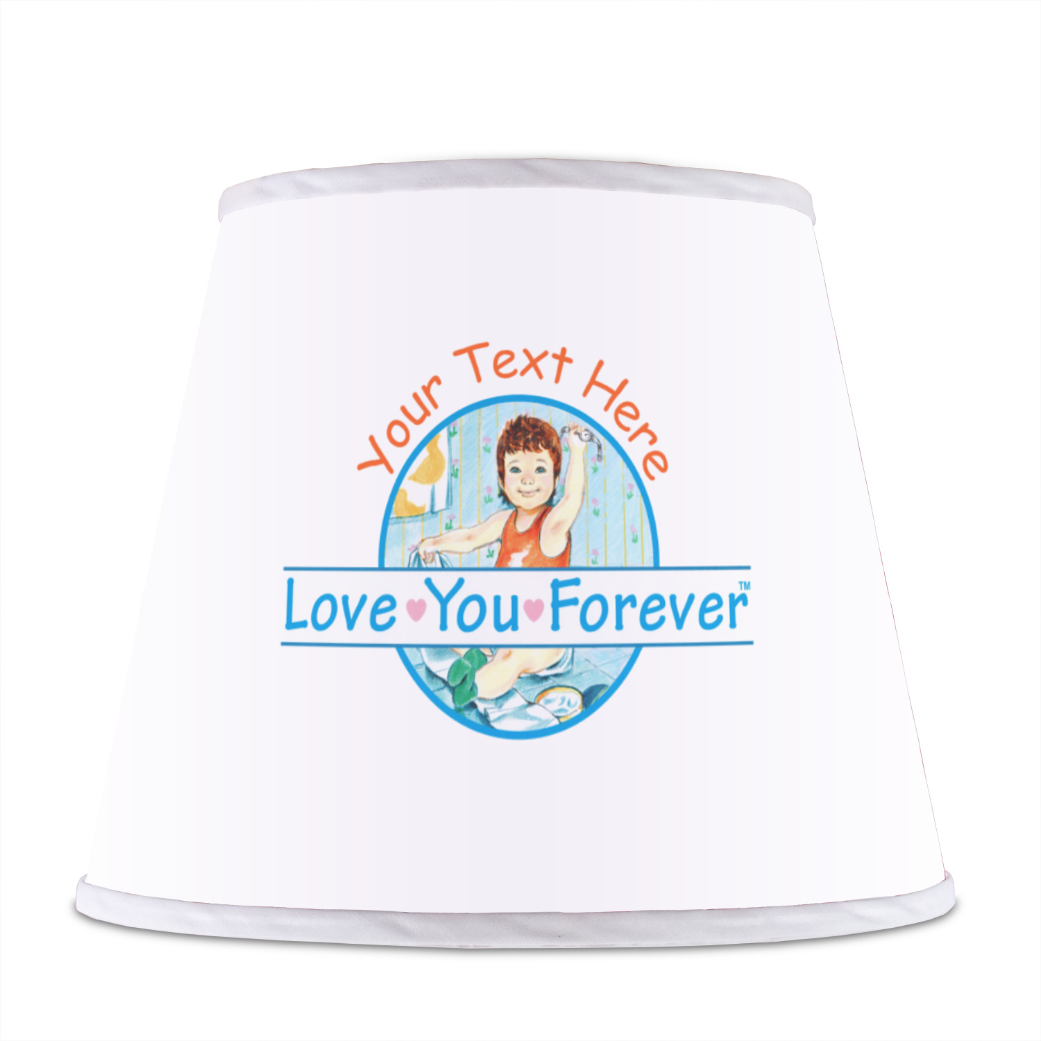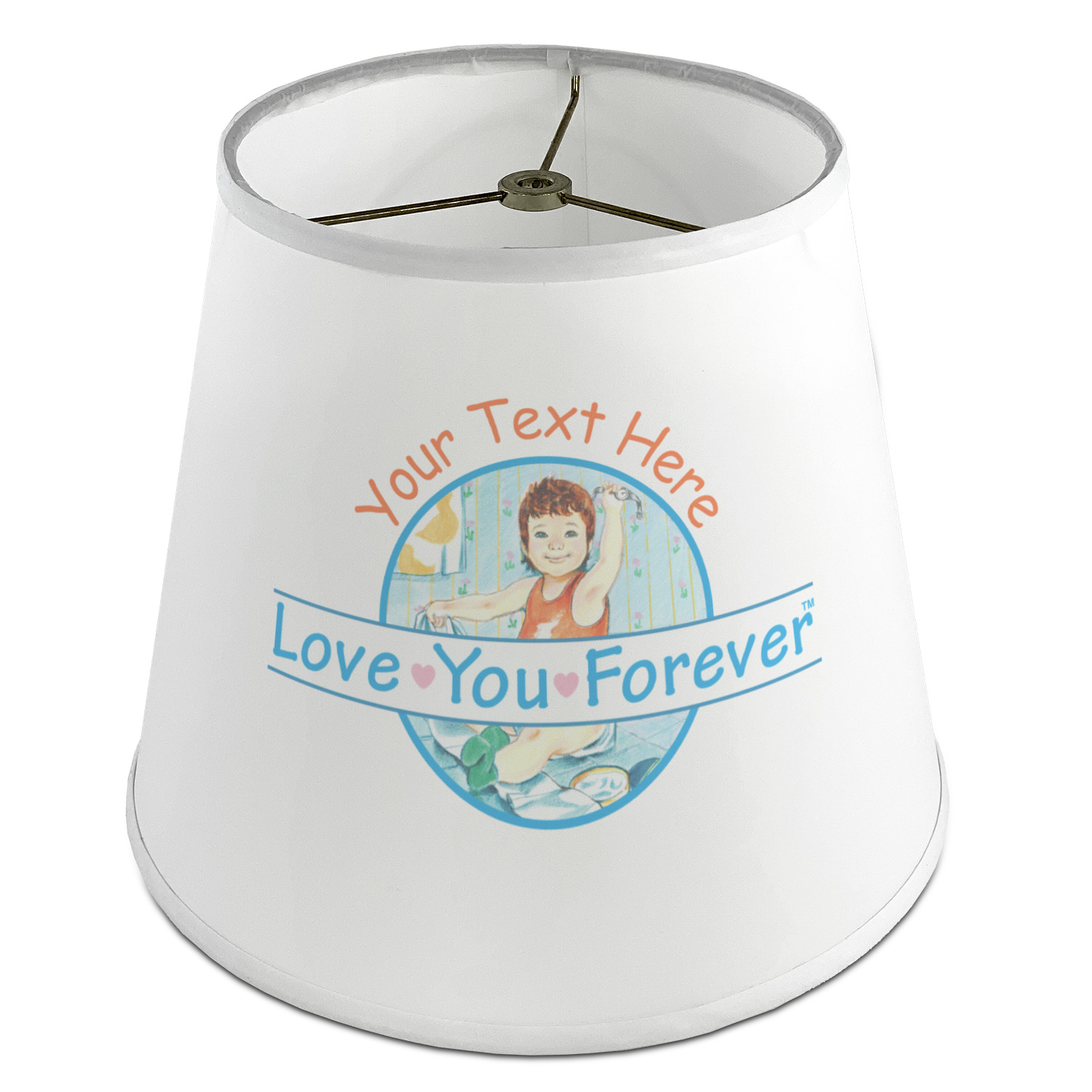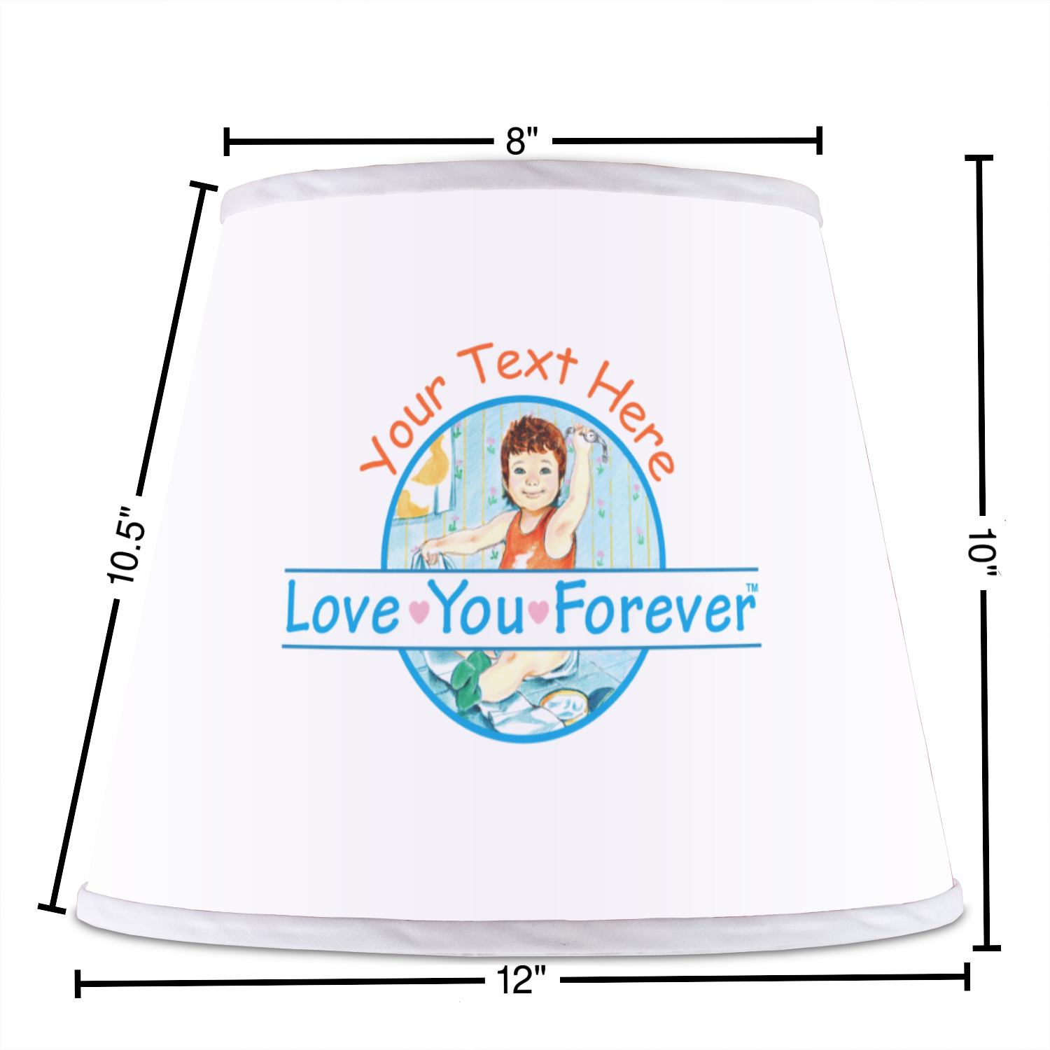 The base of this lampshade is 12 inches in diameter, and the top spans 8 inches in diameter. The total height of the lampshade is 10 inches. The angled nature of this custom lampshade concentrates the light, making it ideal for smaller spaces. This lampshade is made of matte, polyfilm, and displays your customization in its middle. The top and bottom of this colorful lamp shade are lined with a white fabric ribbon (which can be replaced with black inside the design studio) which frames your design and creates a sophisticated finish. As an UNO fitter lampshade, this unique lamp shade will fit a variety of bases.