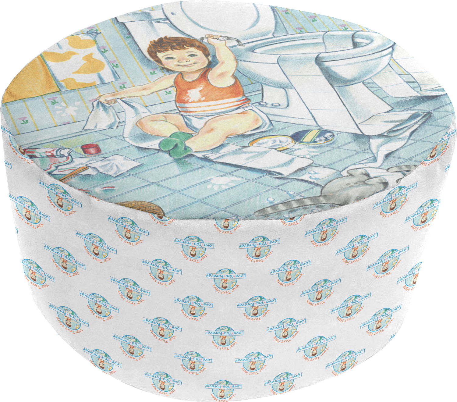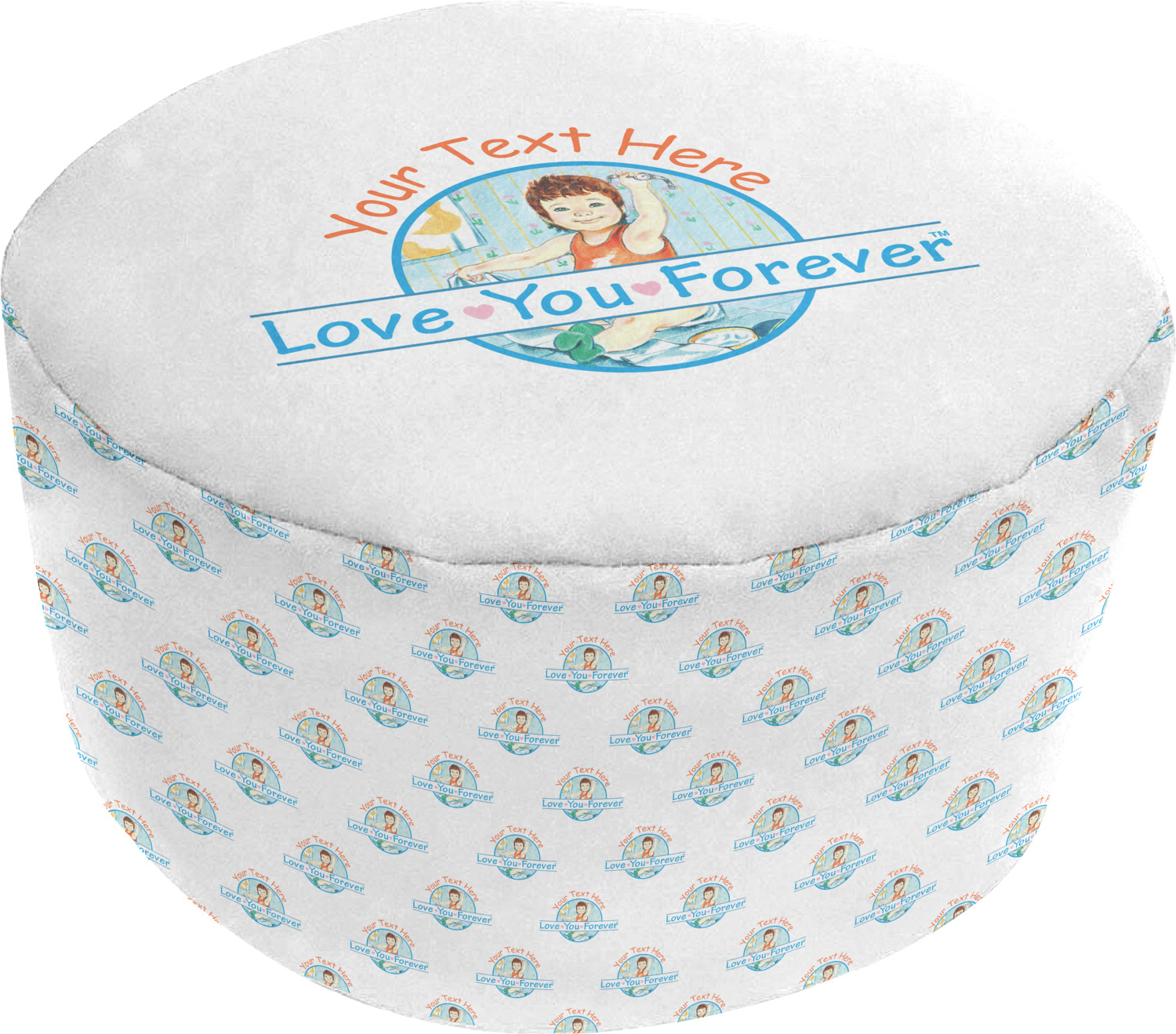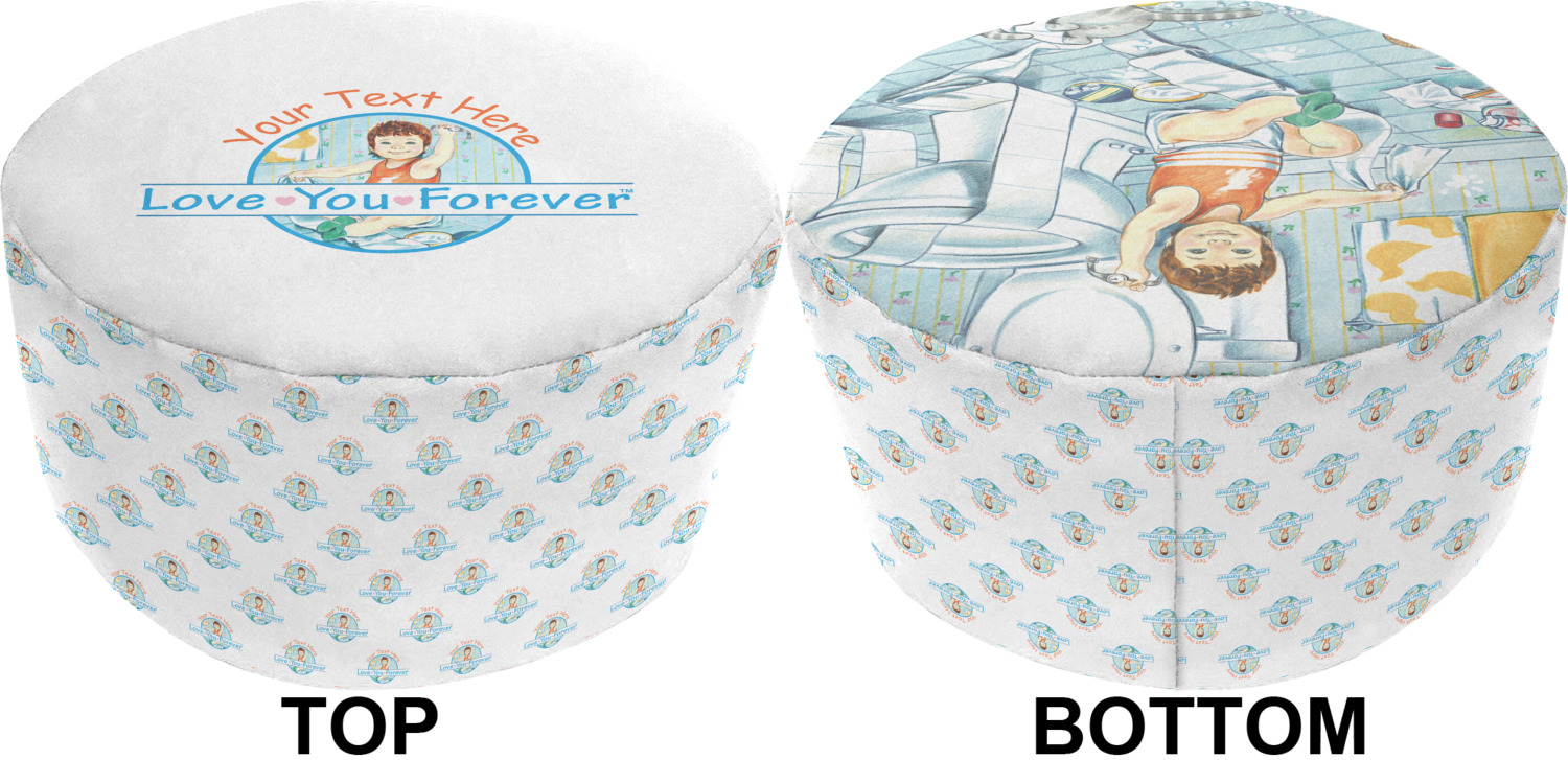 These ottoman chairs are made after you design them, and then printed, cut, and sewn right here in the USA. Your personalization is displayed across the soft, removable cover of these ottomans, in bright, vibrant color. We provide you with the option of designing the top, bottom, and sides of your brand new floor pouf. For your convenience, the cover can easily be removed from the inner insert through a zipper closure. The inner insert of this fabric ottoman also has a small zipper and is filled with polystyrene beads for your comfort. The ottoman itself has about a 20-inch diameter and is 13 inches tall.